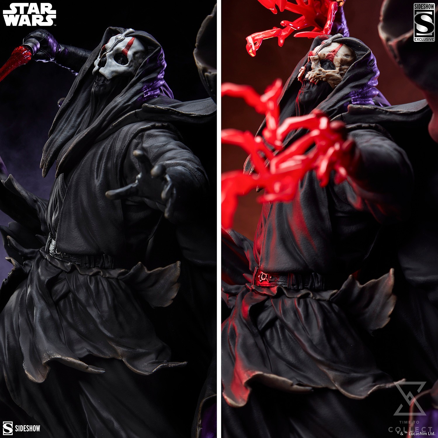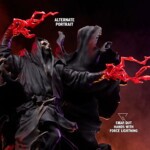 The Exclusive Edition of this Star Wars statue includes swap-out arms with red Force lightning erupting from Darth Nihilus’ gloved hands. It also features an alternate headsculpt depicting a realistically rotted skull mask, which emphasizes the brutal nature of this cursed character.