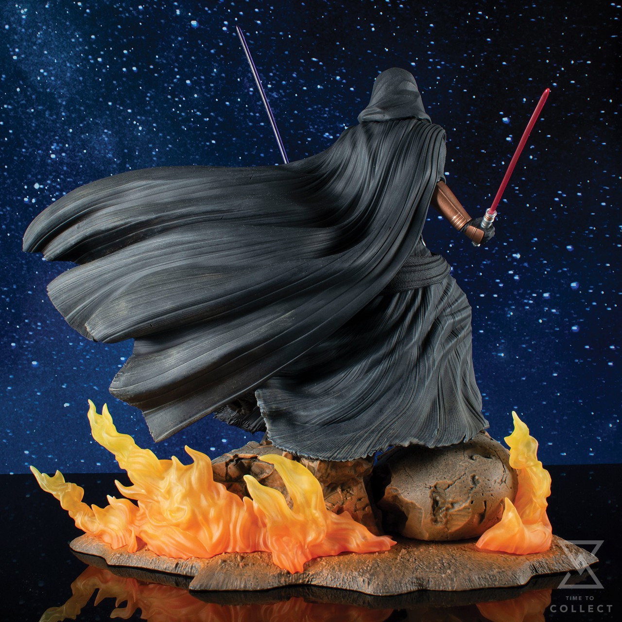 As seen in Star Wars: Knights of the Old Republic, the Sith (or Jedi?) Darth Revan stands atop a flaming statue with two lightsabers and a flapping robe in this all-new Gallery Diorama by Gentle Giant LTD. Featuring detailed sculpting and paint applications, including translucent flames and lightsaber blades, it is made of high-quality PVC and comes packaged in a full-color window box.