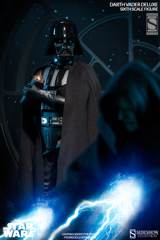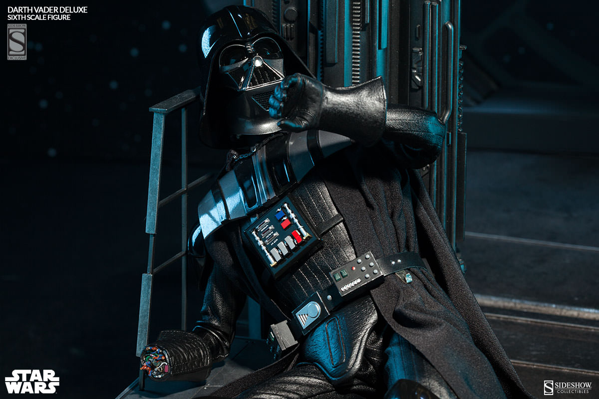 Sideshow celebrates the 30th anniversary of Star Wars Episode VI: Return of the Jedi with the new Darth Vader Deluxe Sixth Scale Figure. Recreate every memorable scene with this essential Vader figure, featuring a fully articulated body, faithfully reproduced costume, and detailed helmet, mask, and portrait options. To complete your display, we’ve included an impressive Imperial-themed light up figure stand and a meditation chamber stand for Vader’s helmet and mask.
