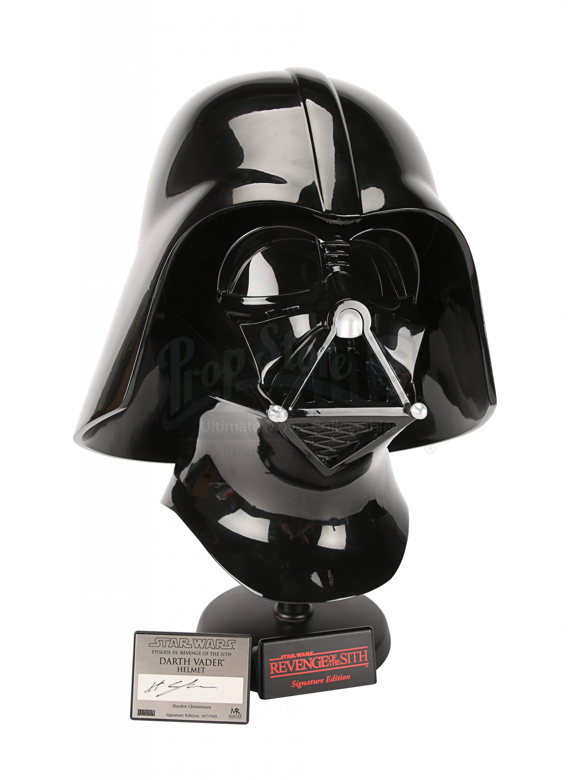 Darth Vader Episode III: Revenge of the Sith Helmet Replica SW-138P SIGNATURE EDITION Limited Edition of 500 In partnership with Lucasfilm Ltd., Master Replicas was provided with the original helmet molds created for Star Wars: Episode III. The master casts were pulled from these molds, guaranteeing the Darth Vader Studio Scale Helmet to be the exact replica. Sturdy fiberglass construction, High gloss black paint finish Each helmet is wearable with leather lined interior with suede-covered foam padding (2 of the interior foam pads have come loose and are included) with a fully integrated strapping system Comes with a custom display stand, metal plaque Approximate Product Dimensions: 14.25″x13″x16″