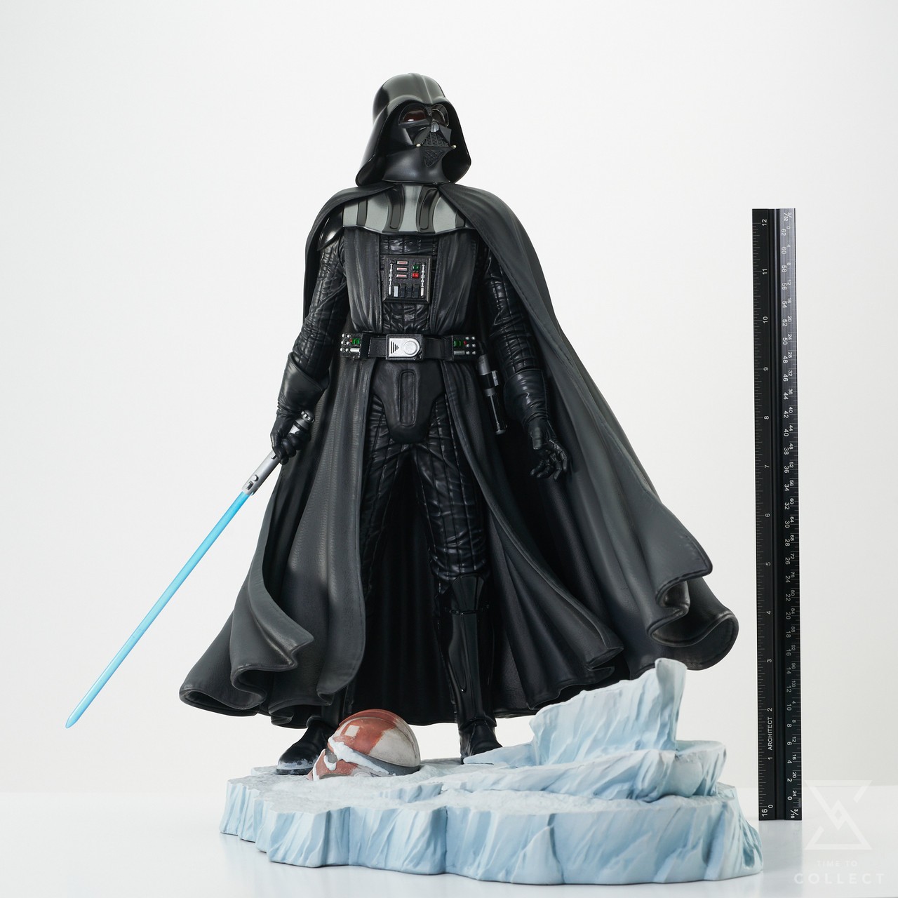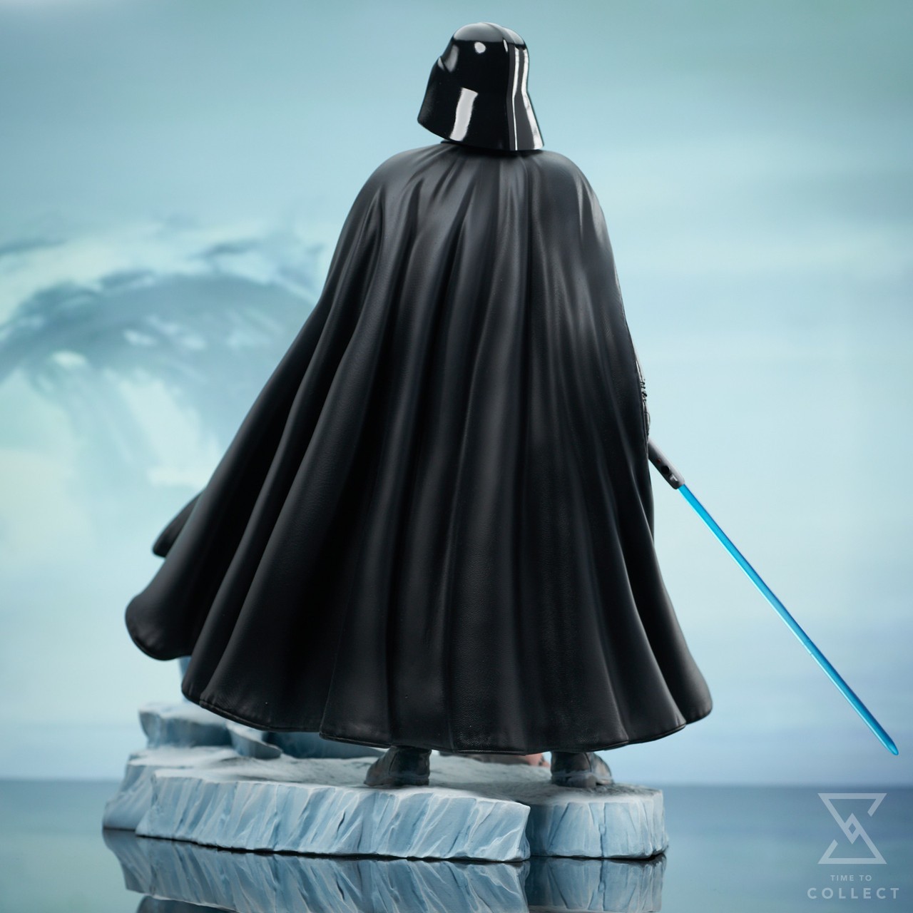 It’s the end of one chapter and the start of another, in this new, web-exclusive Milestones statue! Based on the Clone Wars finale, this 1/6 scale statue of Darth Vader depicts him holding Ahsoka’s blue lightsaber and standing on a snowy landscape near a discarded Clone Trooper helmet. Plus, if you line up the snow patterns just right, a portrait of Ahsoka appears! Measuring approximately 14 inches tall, this statue is limited to only 1000 pieces and comes packaged in a full-color box with a numbered certificate of authenticity.