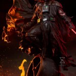 This quarter scale Darth Vader collectible features a fully sculpted costume recreating both the intricate hardware of the character’s cybernetic life support systems and the dynamic, flowing movement of his windswept robes and cape. Detailed tatters and tears in his black uniform reveal the burns he sustained during his most fateful duel as well as the mechanical limbs gifted to him by his new master, Darth Sidious. The striking paint applications on Vader’s costume also reflect the glowing flames and the red lightsaber, giving depth and dimension to the scene. Additionally, the Darth Vader™ Mythos Premium Format Figure includes light-up aspects in the belt box, chest box, lightsaber, and base, allowing the fire to burn bright as Vader descends to crush his enemies.