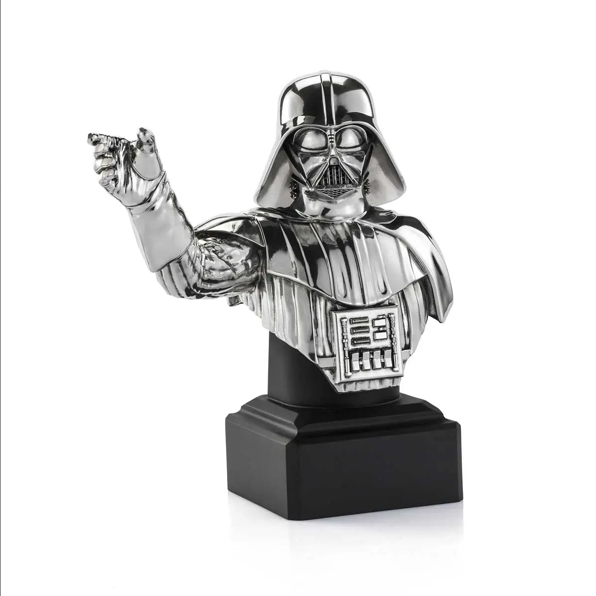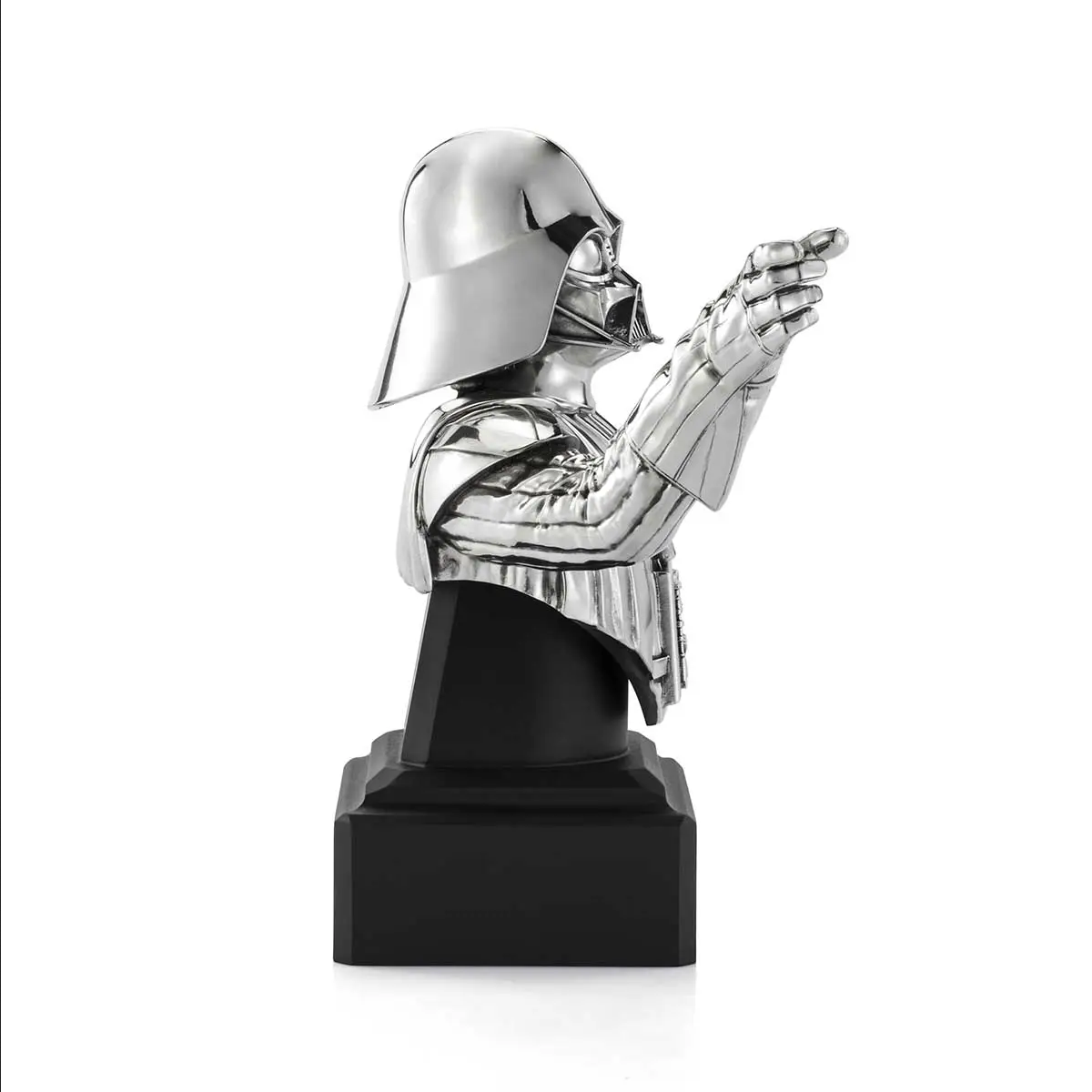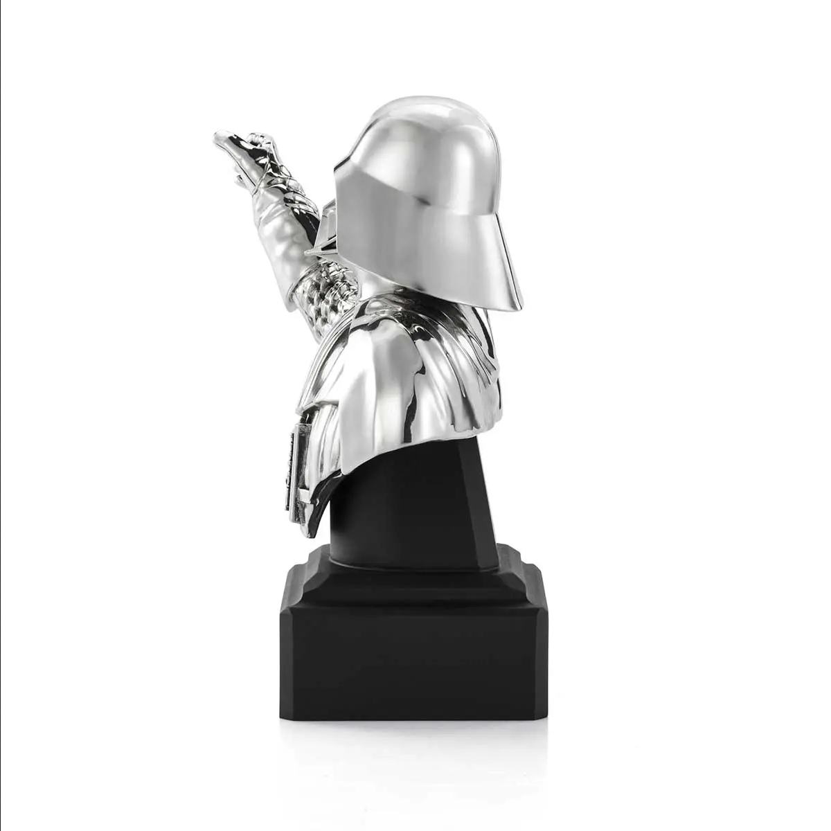 Wielding the Force with sadistic pleasure, Darth Vader crushes anything standing in his way. The classical tradition of the portrait bust makes for an apt and highly dramatic treatment of the Sith Lord. In brilliant finish pewter, on a pedestal of bonded porcelain.