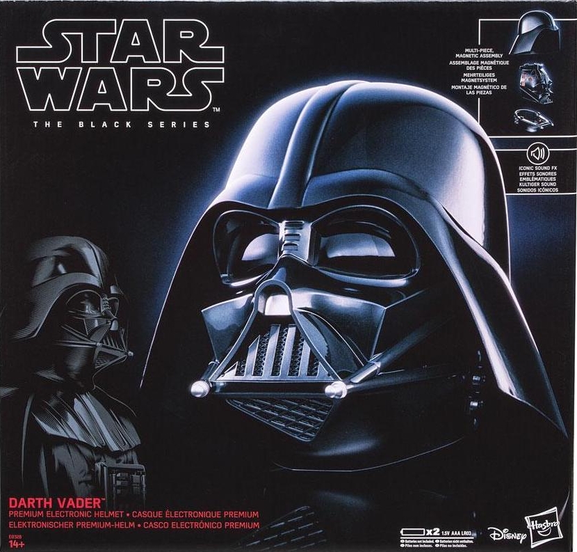 Star Wars Black Series Darth Vader Helmet featuring multi piece magnetic assembly and iconic sound fx. Realistically detailed interior and exterior reproduction.