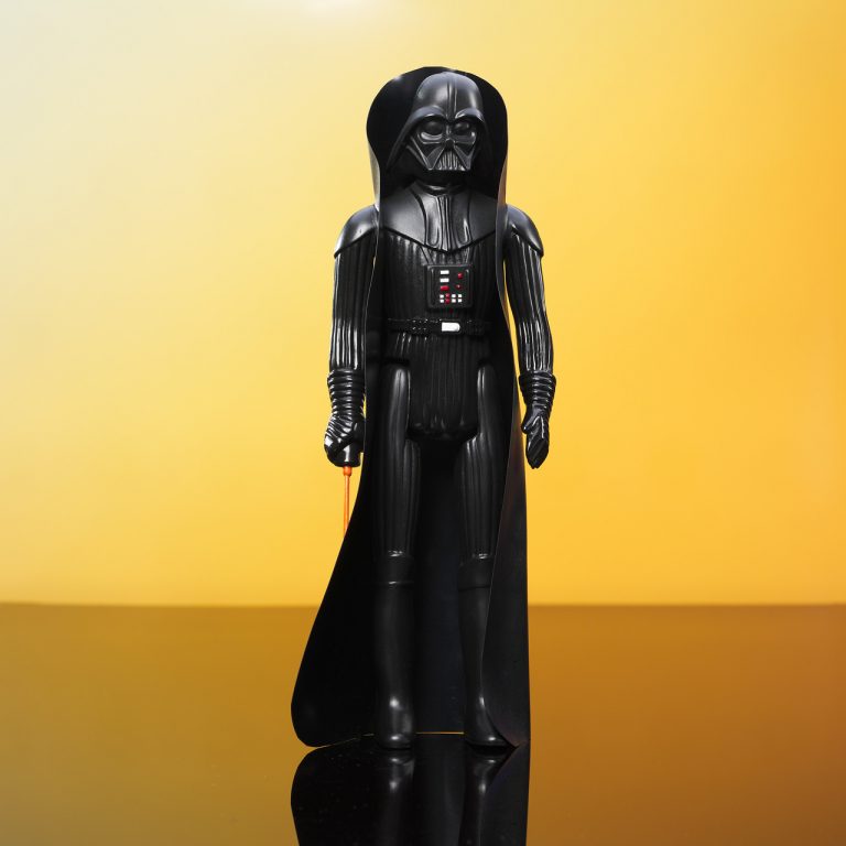Silver foil accents adorn a classic Empire Strikes Back blister card commemorating 2020’s 40th Anniversary of one of the greatest sequels of all time. Packaged in a re-sealable clam-shell blister our limited edition Darth Vader has a newly updated glossy sheen that more closely resembles the luster of its original 3 ¾” counterpart. Recreated from authentic Kenner figures and 3D scanned geometry, this 12” scaled Darth Vader retro-collectible features an extendable orange bladed lightsaber and vinyl cape. Just like it was when you were a kid….only bigger!”