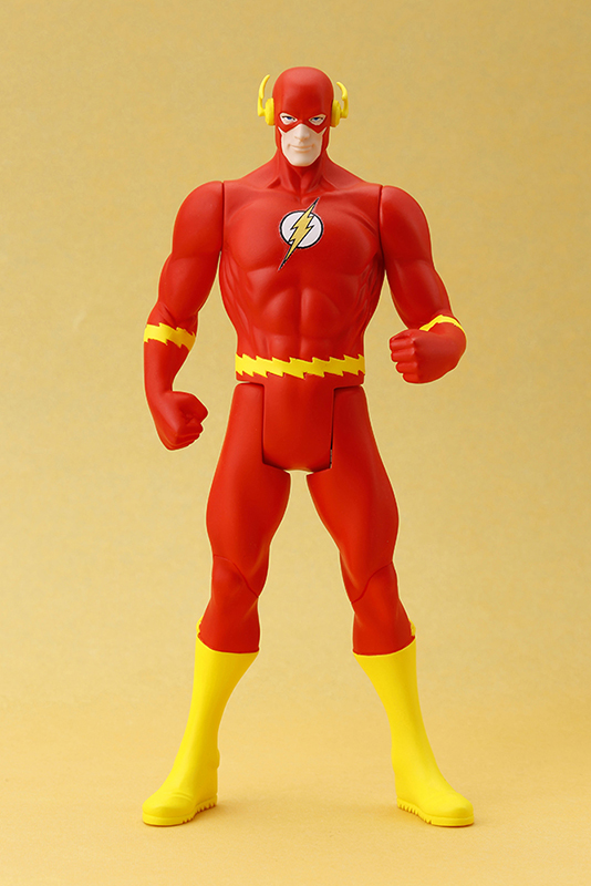 A KOTOBUKIYA Japanese import! Kotobukiya’s groundbreaking DC Comics Classic Costume ARTFX+ Statue series brings you brand new non-articulated comic book characters based on vintage 1980’s Super Powers action figure sculpts enlarged to 1/10th scale. Speeding his way into your collection after Superman and Green Lantern is the fastest man alive, THE FLASH! Retro is in and you can celebrate the great action figures of yesteryear with this vintage-inspired Barry Allen Flash resembling a classic five points-of-articulation toy. An all new sculpt updates the classic style yet retains the nostalgic feel, and collectors will immediately recognize the inspiration for this look. The Flash stands in a classic action figure running pose, his elbows bent as he starts to pick up speed. Whether you had the original Super Powers figure or not you’ll love the bright colors of this new version with the eye-catching scarlet costume, yellow highlights, lightning symbol on his chest, and of course Barry’s blue eyes.