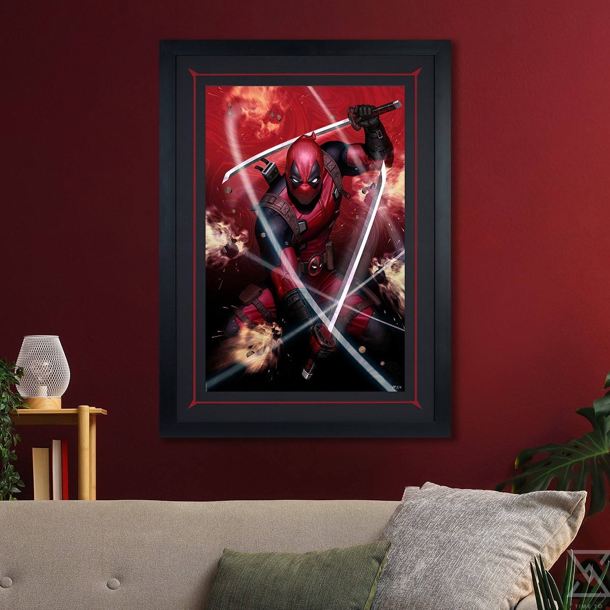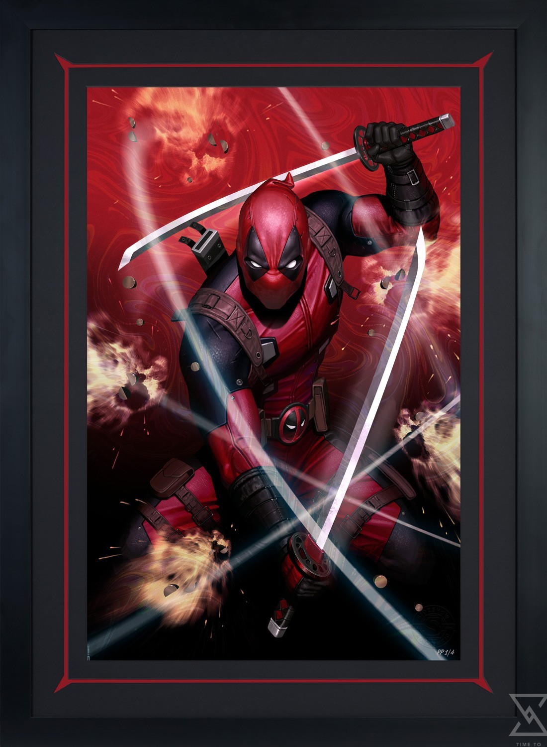 Originally created as a variant cover for Deadpool #1 (2024), written by Cody Ziglar for Marvel, this Deadpool artwork is now available for fans to collect in either an unframed or custom framed format. Each Deadpool #1 Fine Art Print is printed on rainbow lava holofoil paper and features an embossed Sideshow Seal of Authenticity as a part of the limited edition of 150 pieces.