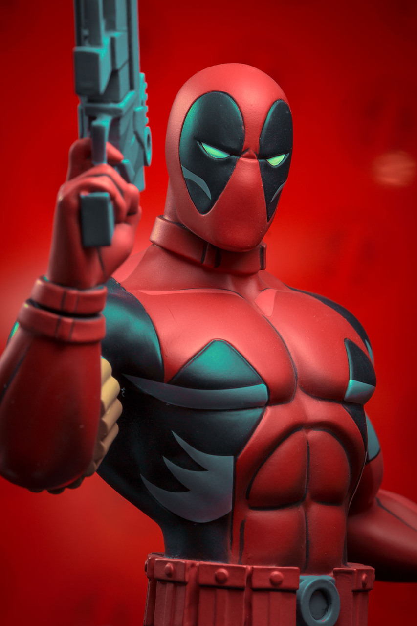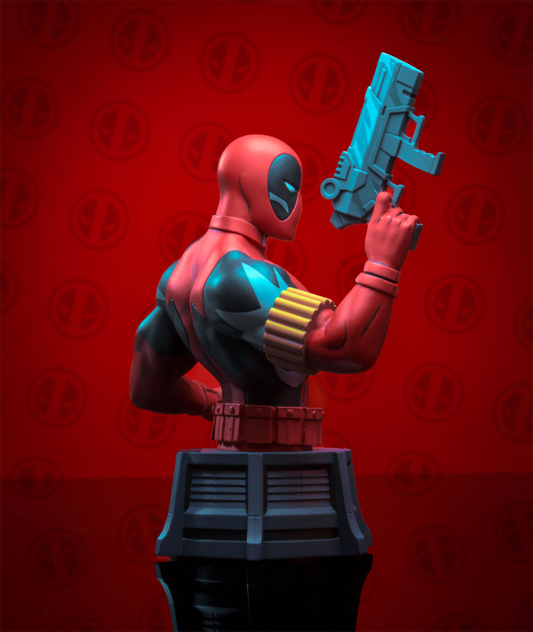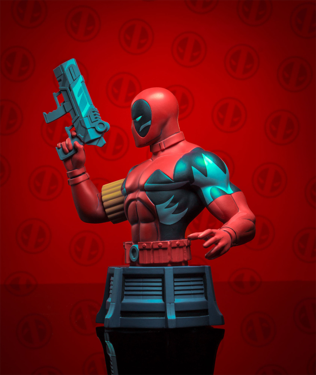 The hit bust series continues! Based on the original X-Men animation from the 1990s, this approximately 6-inch bust of Deadpool is inspired by his multiple appearances in the series. Featuring a cartoon-accurate paint scheme and detailed sculpting, this bust is limited to only 3.000 pieces and comes packaged with a certificate of authenticity in a full-color box. Designed by Barry Bradfield, sculpted by Paul Harding.
