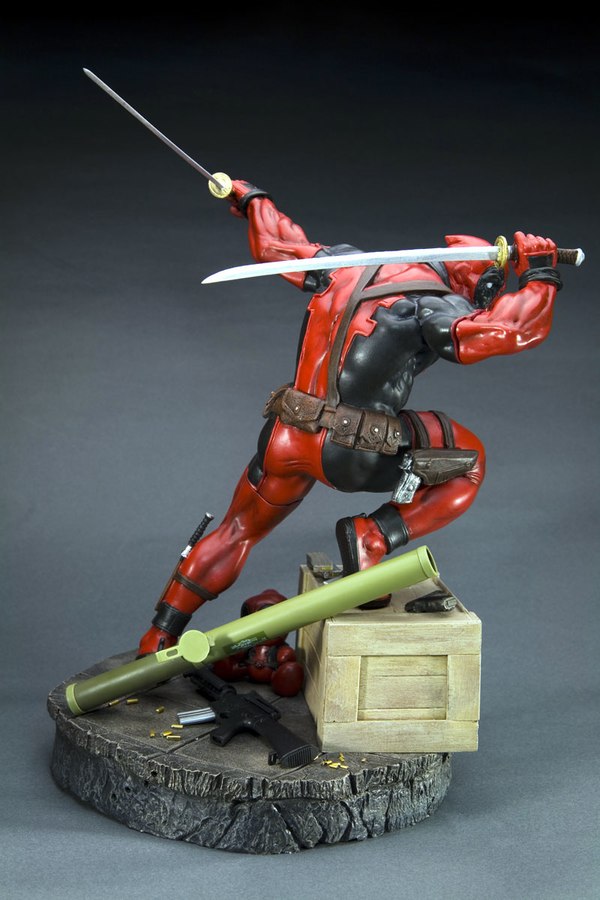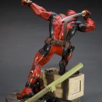 Deadpool stands approximately 10 inches tall, leaning over a detailed battle scene complete with crate and even a tiny Deadpool “plush” toy! Sculpted by Erick and William Valenzuela, the demented yet hilarious assassin is recreated in high quality cold cast resin. Get him… before he gets you.