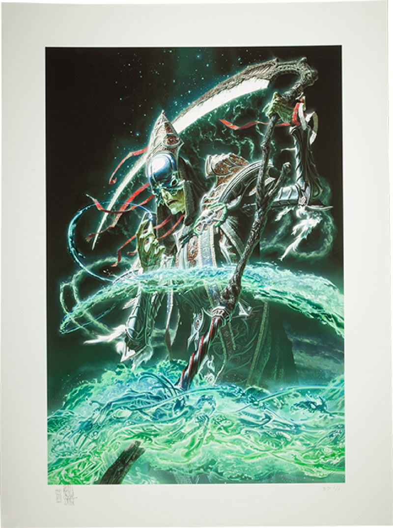 FROM OUR ALL-NEW COURT OF THE DEAD PREMIUM ART PRINTS COLLECTION, SIDESHOW COLLECTIBLES IS PROUD TO PRESENT DEATH: SHEPHERD OF SOULS BY FABIAN SCHLAGA.