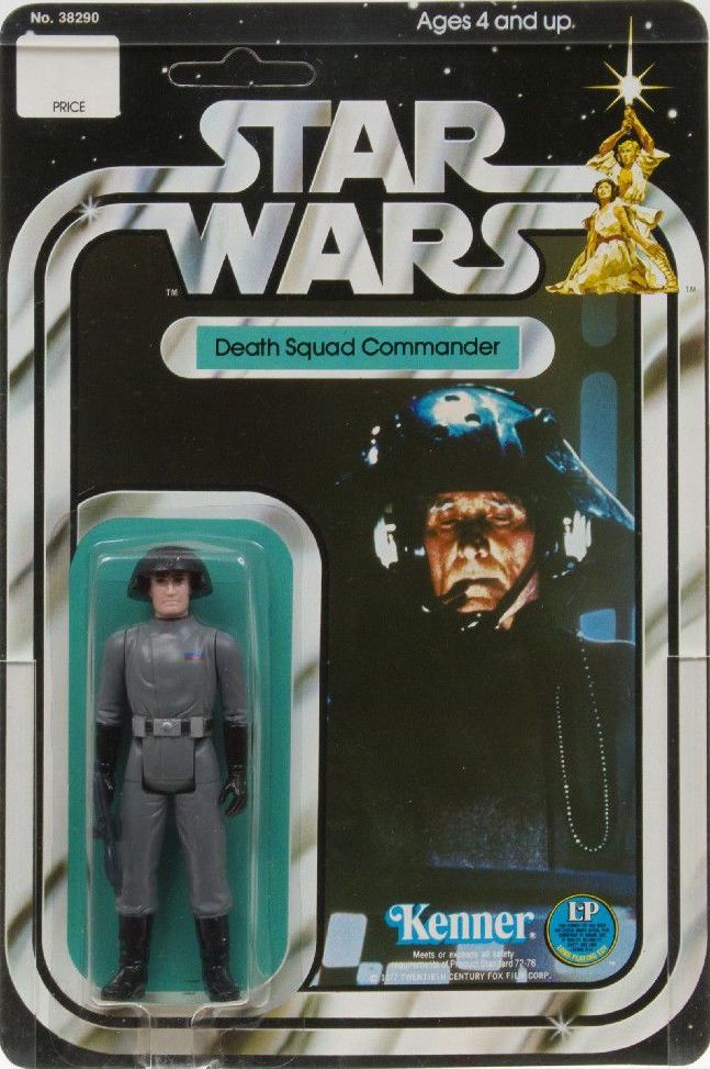 Star Wars Vintage action figure Death Squad Commander produced in 1977 on 12 back card. Part of the first 12 release from Kenner to support Star Wars, A New Hope.