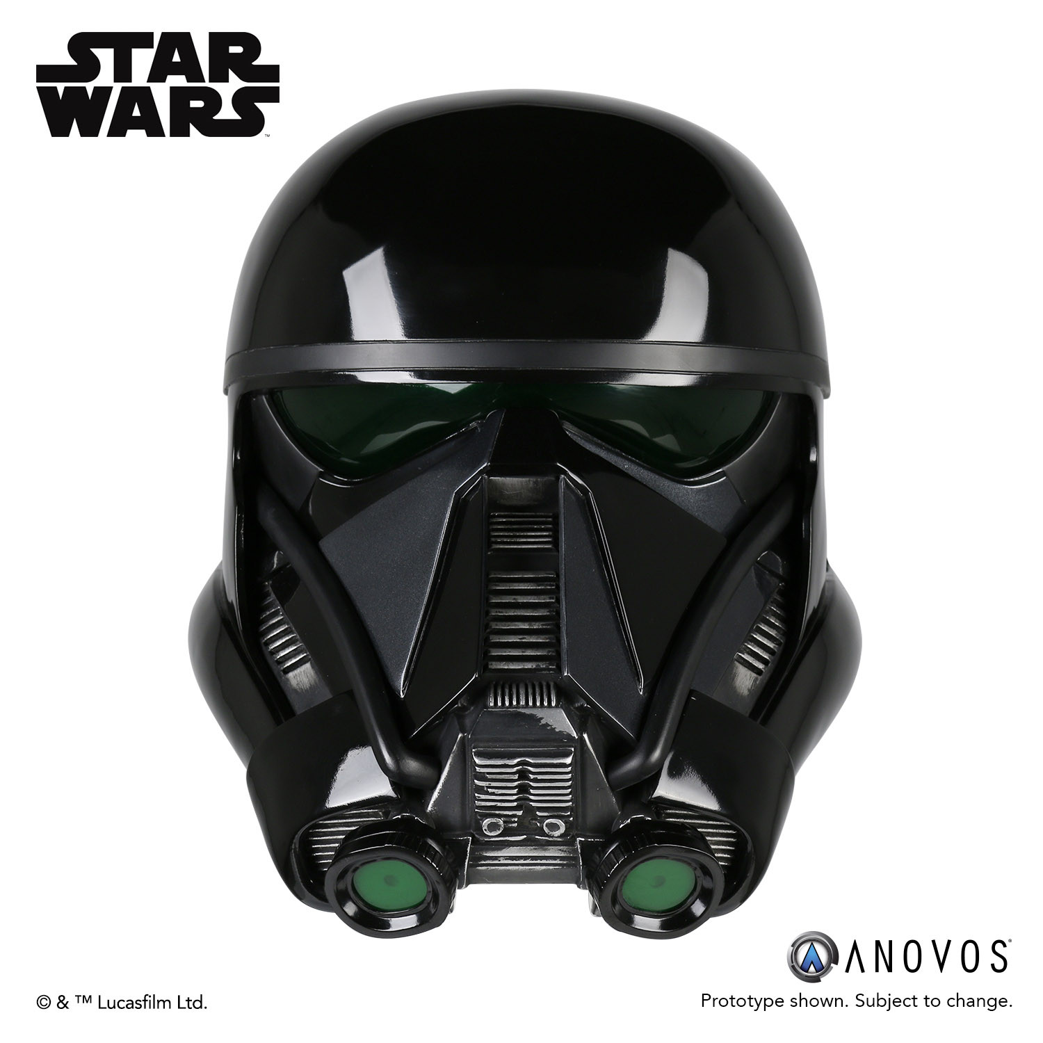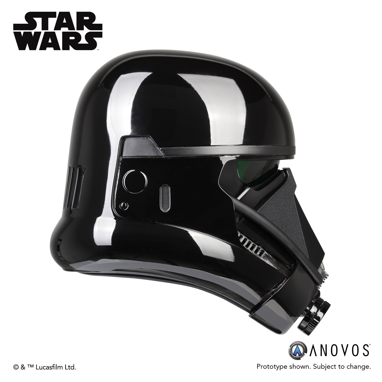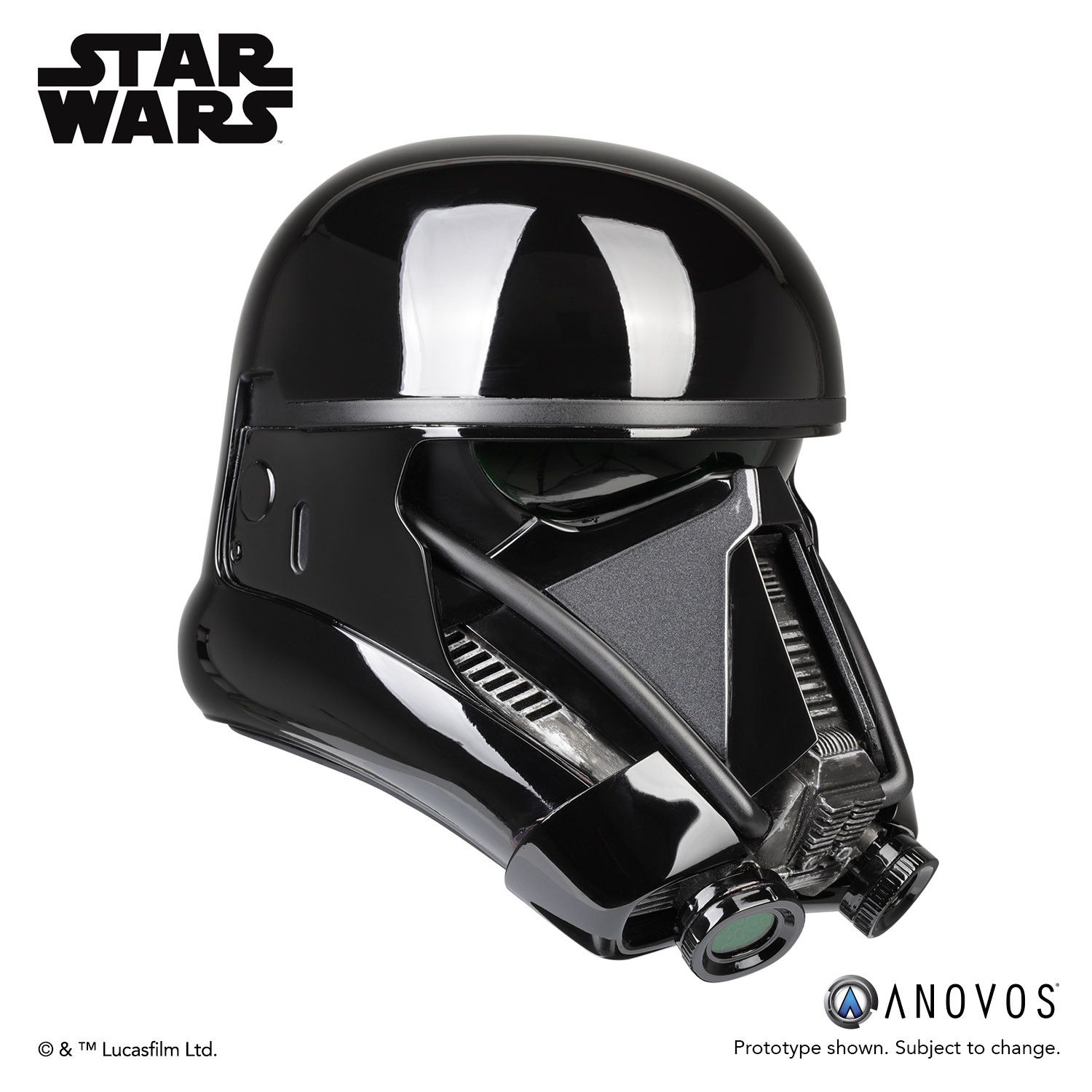 The elite soldiers of Imperial Intelligence, Death Troopers are encased in specialized stormtrooper armor with a dark, ominous gleam. These soldiers serve as bodyguards and enforcers for Director Krennic, a highly placed officer within the Advanced Weapons Research division of the Empire. ANOVOS is proud to offer the »Rogue One: A Star Wars Story« Death Trooper Helmet Accessory. Items are subject to change in availability and