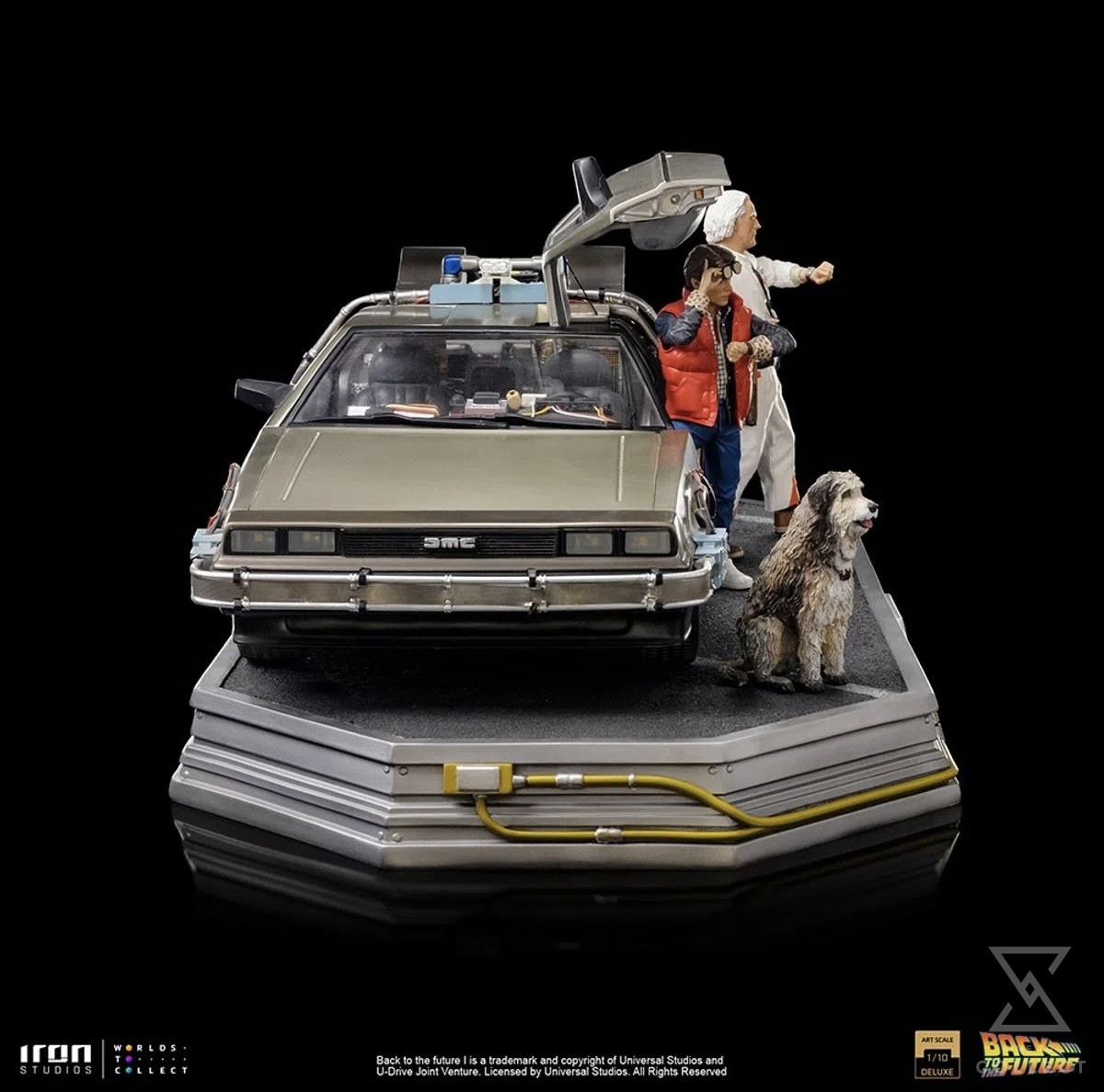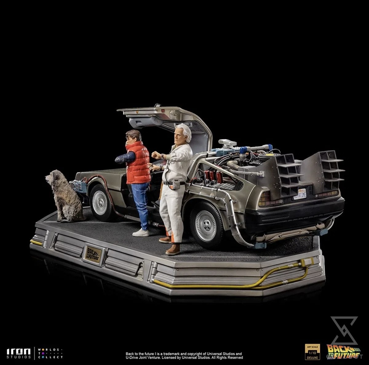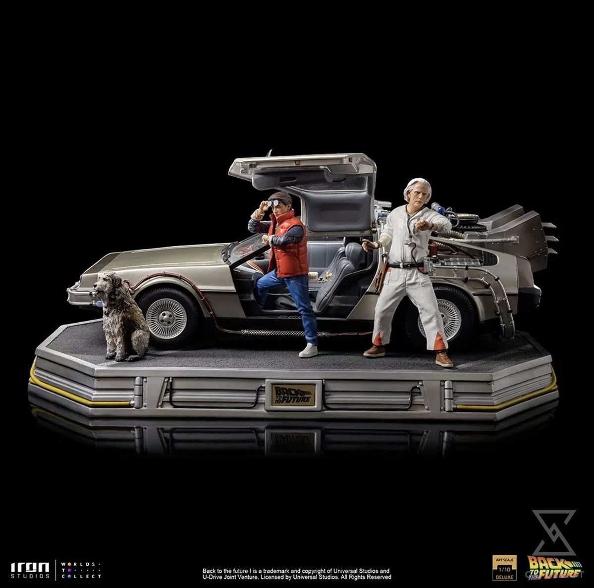 Just like in their original appearance in 1985, immortalized by the art of Drew Struzan in the first official poster, the young Marty McFly next to his best friend, the eccentric scientist Emmett “Doc” Brown and his pet Catalan sheepdog called Einstein (exclusive in the DeLorean Full Set Deluxe), together with the most iconic time machine ever made, the legendary plutonium-fueled DeLorean, get ready to initiate one of the most momentous time travels in the history of cinema, in the awarded science fiction directed by Robert Zemeckis, that originated the trilogy of movies and created a successful multimedia franchise with video games, attractions in theme parks, an animated series, and many collectibles. Iron Studios proudly present the statue “DeLorean Full Set Deluxe – Back to the Future – Art Scale 1/10”, portraying one of the most memorable sets from “Back to the Future”, considered by critics and public as one of the biggest science fiction movies and one of the best productions ever made in the 7th Art.