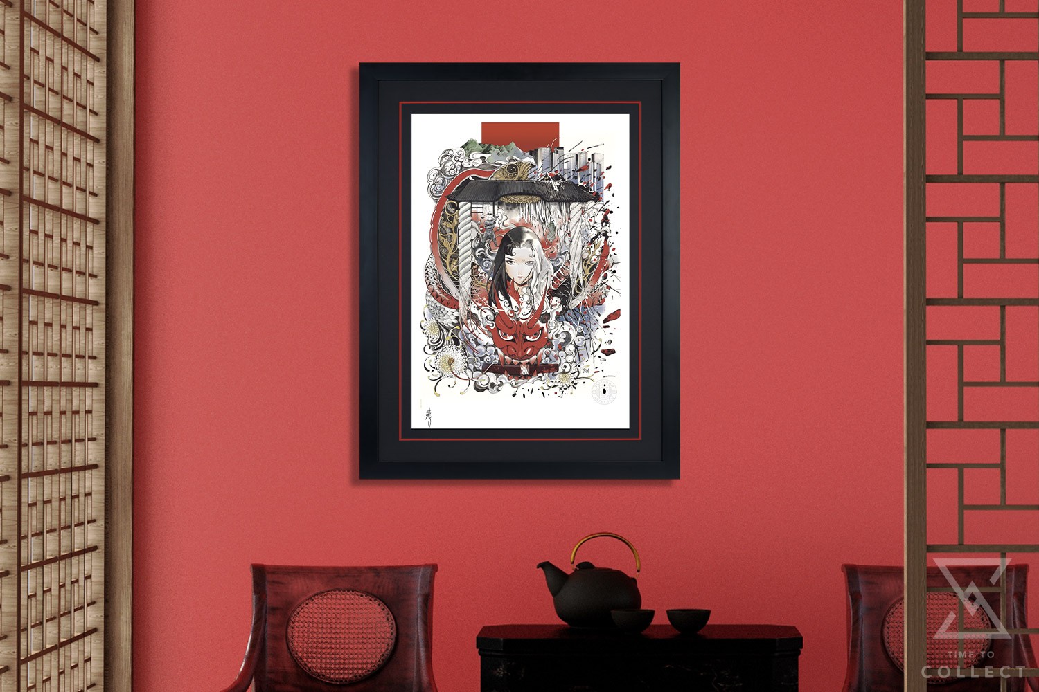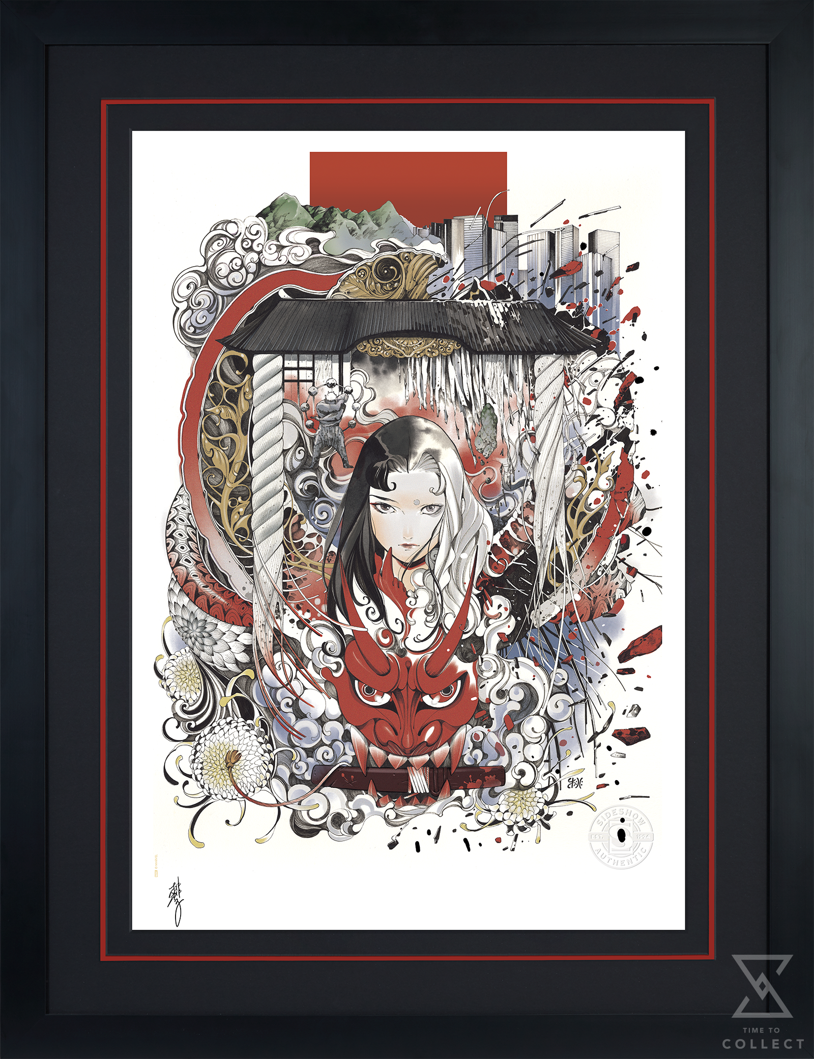 Originally published as the cover to the Demon Days Treasury Edition (2022), this Marvel artwork is now available to fans in a fine art format. Each Demon Days: Yashida Saga Fine Art Print features an authorized, automated artist signature and an embossed Seal of Authenticity as a part of the limited edition of 150 pieces. Collectors can bring home this stunning composition as either an unframed giclée print or with a custom framed presentation featuring a stylish double mat design.