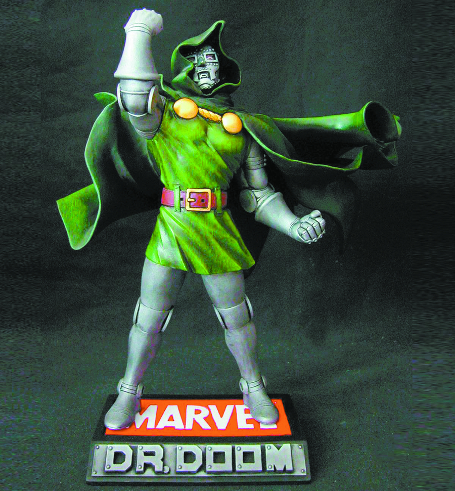 A Diamond Select Release! Sculpted by Derek Miller, the Doctor Doom maquette is the third piece in a line of artist-reference statues. Standing 8 ” tall, the sovereign ruler of Latveria stands regally as an animation-style maquette that features a base emblazoned with both the “Marvel Comics” and “Doom” logos. Limited to 5,000 pieces worldwide. Includes a full-color, hand-numbered Certificate of Authenticity. Painted and ready for display.