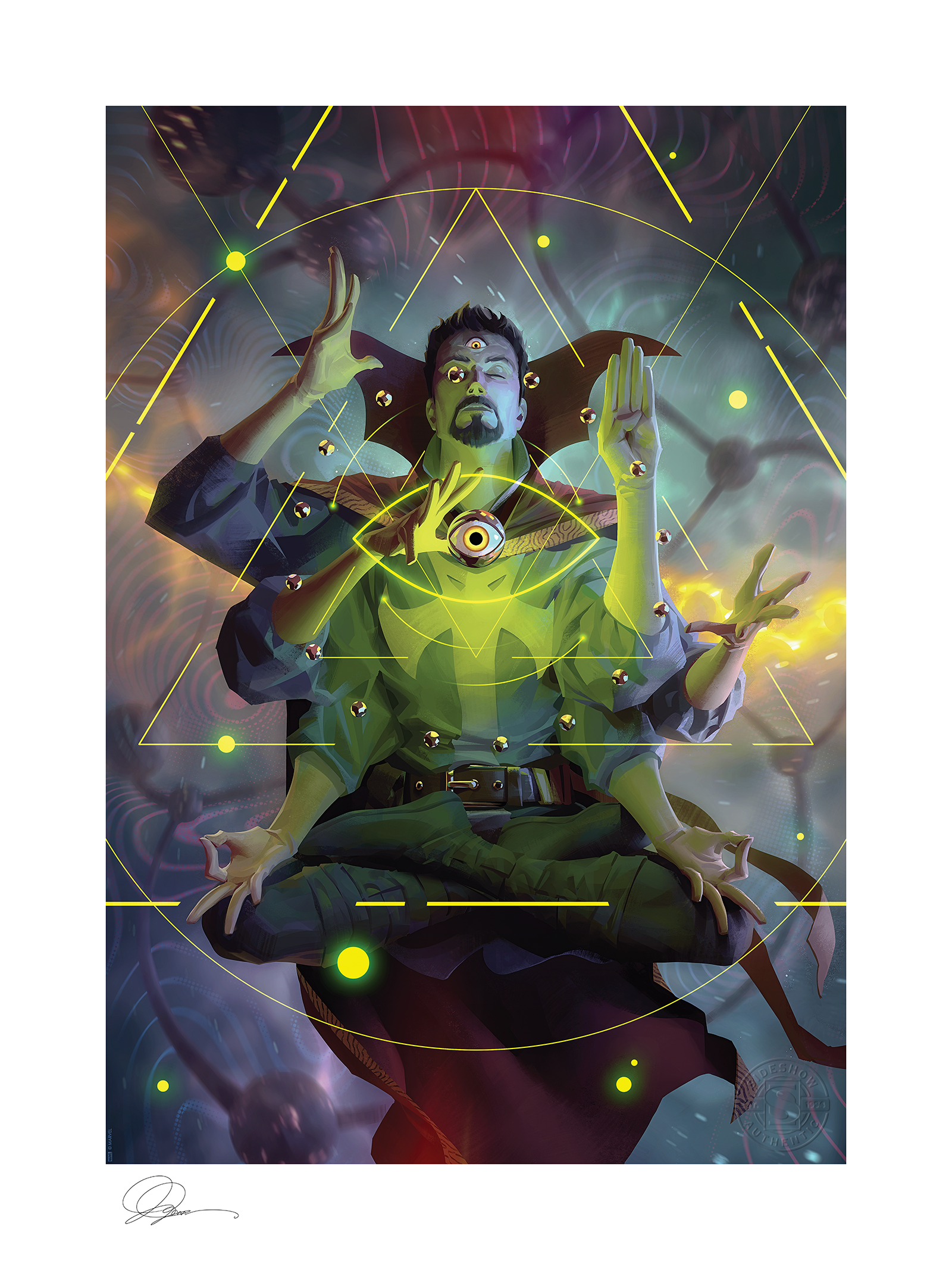 Each Doctor Strange Fine Art Print features an authorized, automated artist signature and an embossed Seal of Authenticity as a part of the limited edition of 350 pieces. Pair this Marvel artwork with the Doctor Strange Maquette by Sideshow for a spellbinding tribute to the Sorcerer Supreme!
