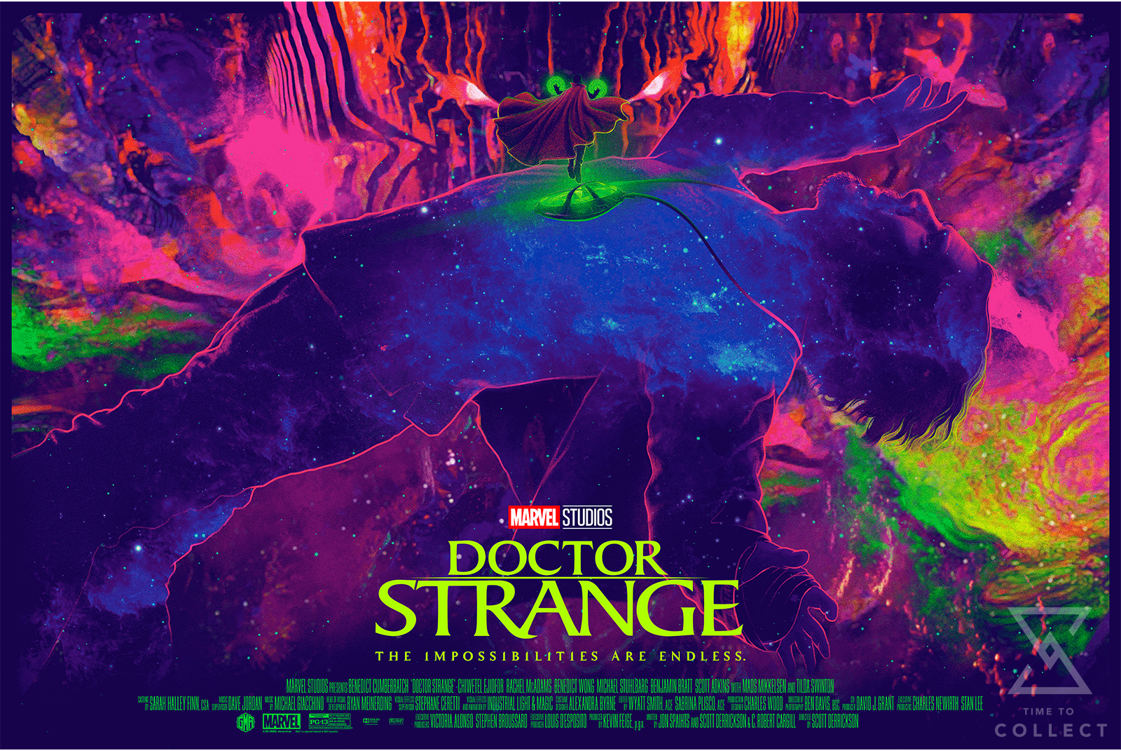 In 2016’s Doctor Strange, the impossibilities are endless. Paying tribute to the journey of Dr. Stephen Strange as he becomes a master of the mystic arts, this screen print takes us on our own journey through its gorgeously supernatural presentation of color.