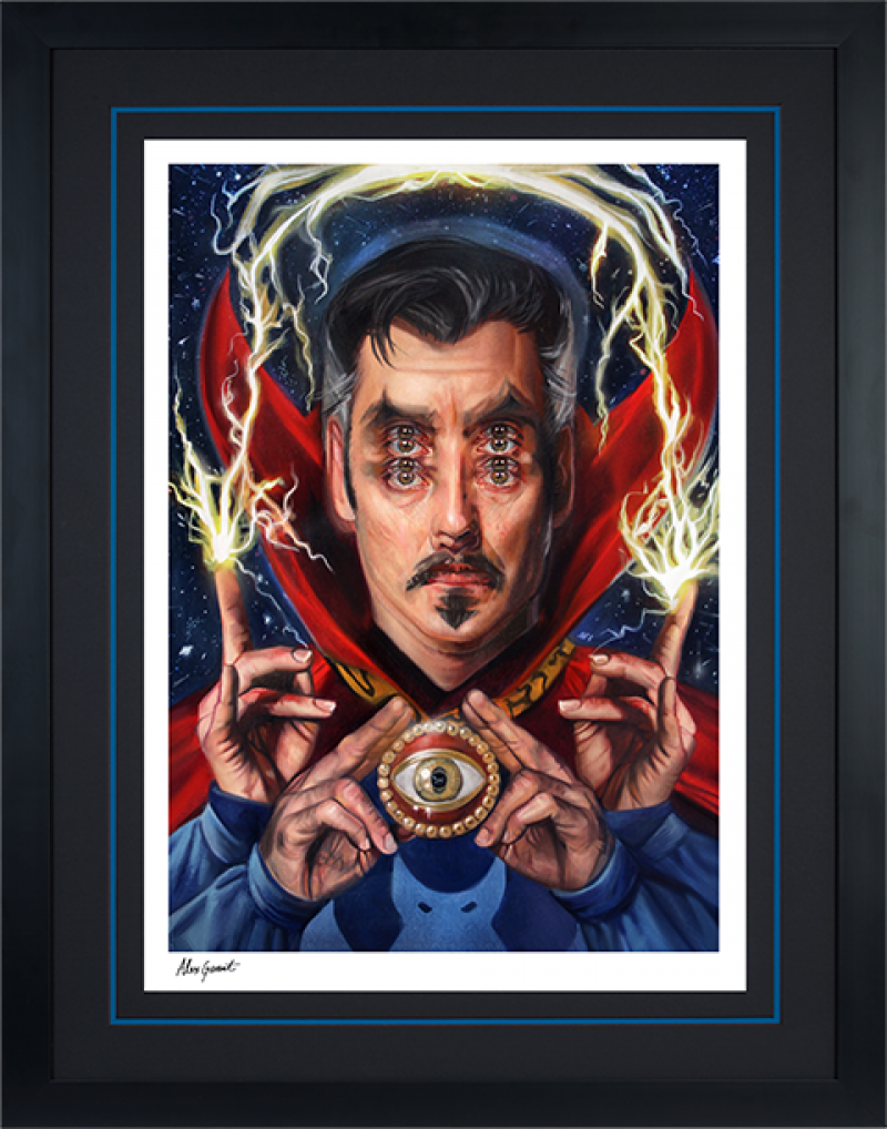 Each Doctor Strange: Open Your Eyes Fine Art Print features an authorized, automated pencil signature and is a part of a hand-numbered limited edition of only 175 pieces. This Marvel fine art collectible is a must-have for fans of the mind-bending mystic arts. The framed edition fine art print includes a matte black or matte white framing option, a custom double mat design, and a wire hanger for an easy and eye-popping display.