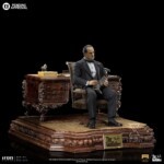 Iron Studios also bring a regular version of the statue “Don Vito Corleone – The Godfather – Art Scale 1/10”, with a simpler and smaller base, with Don Vito on his chair over the old floor of his mansion and the logo of the movie on the front.