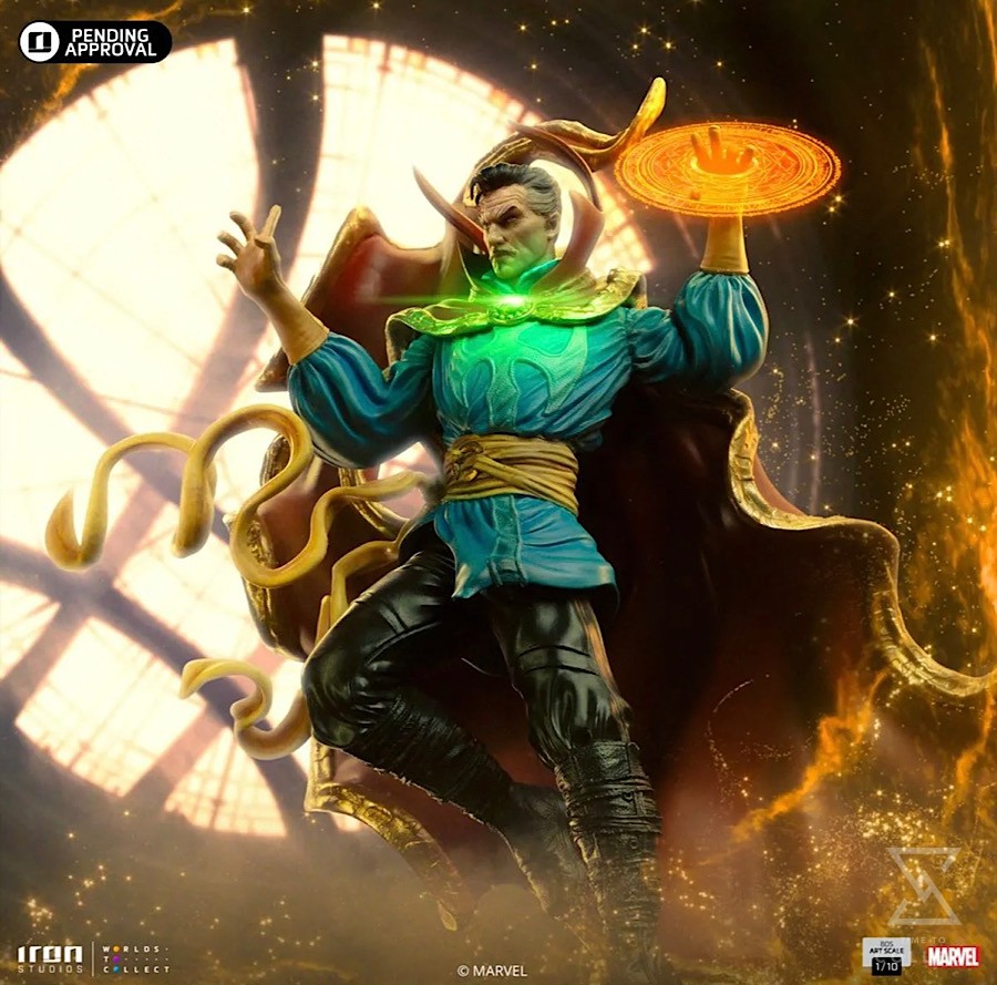 Exploring the Doctor Strange statue: With his vast mastery of the mystical arts, Earth’s Sorcerer Supreme manipulates energies beyond human comprehension, supported by his protectors, the trinity of entities known as the Vishanti, composed of Agamotto, Hoggoth, and Oshtur. The fearless wizard floats with the powers of his enchanted cloak called the Cloak of Levitation, above a base of an arid battlefield beyond space. With a stern countenance and incisive eyes, the sorcerer wears the powerful artifact called the Eye of Agamotto on his chest. Iron Studios presents the classic version of the master of mystical arts from Marvel universe in the statue “Dr. Strange – Thanos x Avengers Comics – BDS Art Scale 1/10”, inspired by the comics in which Earth’s mightiest heroes face the threat of the mad Titan named Thanos and his Infinity Gauntlet. Iron Studios will also bring the statue “Dr. Strange Deluxe – Thanos x Avengers Comics – BDS Art Scale 1/10”, presenting the Sorcerer Supreme above ruins and jagged rocks, fragments of an insane temple created in tribute to the entity of Death by his mad admirer from Titan. That version comes with an extra interchangeable pair of hands with mystic effects.
