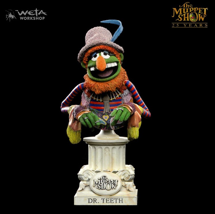 Dr. Teeth is the leader of his own band, Dr. Teeth and the Electric Mayhem. This group – with Zoot on saxophone, Floyd Pepper on bass, Janice on vocals, tambourine and left handed guitar, and Animal on drums – is the prime example of a musical form known as junk rock. With his 3-karat gold tooth, glittering top hat and ring-bedecked fingers, this gravel-voiced impressario of the keyboard (and synthesizer) is the ultimate authority on what is cool.
