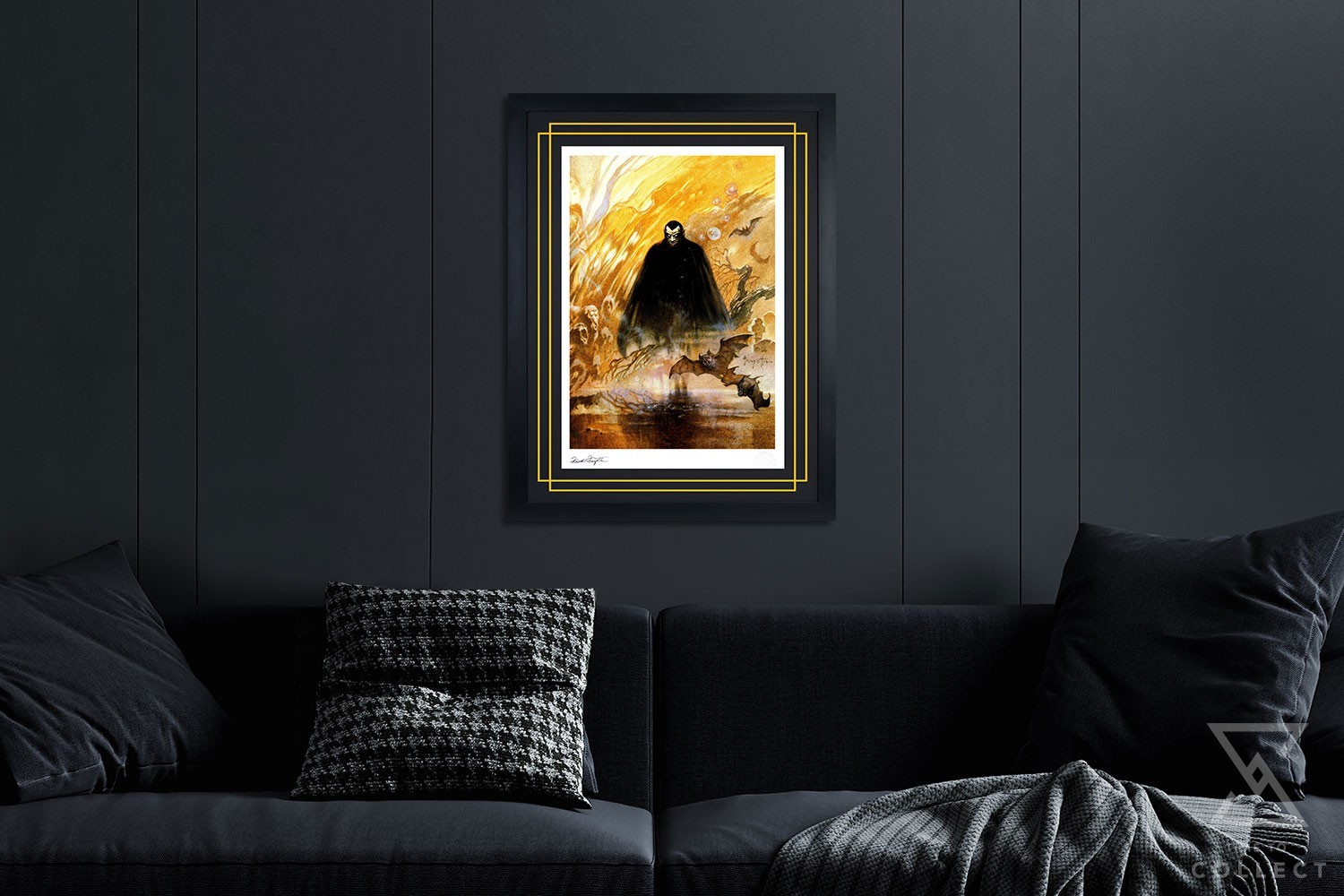 Each Dracula print in the limited edition of 150 pieces includes a Certificate of Authenticity and features a hand-stamped, authorized signature of artist Frank Frazetta as well as the official Frazetta Art Museum embossed Seal of Authenticity. A portion of the proceeds from sales of the Dracula Fine Art Print will directly benefit the Frazetta Art Musuem’s preservation and exhibition of the artist’s essential works. Available unframed and in a custom framed format with a carefully curated double mat design, this incredible illustration is a must-have for Frazetta artwork collectors and horror fans alike.
