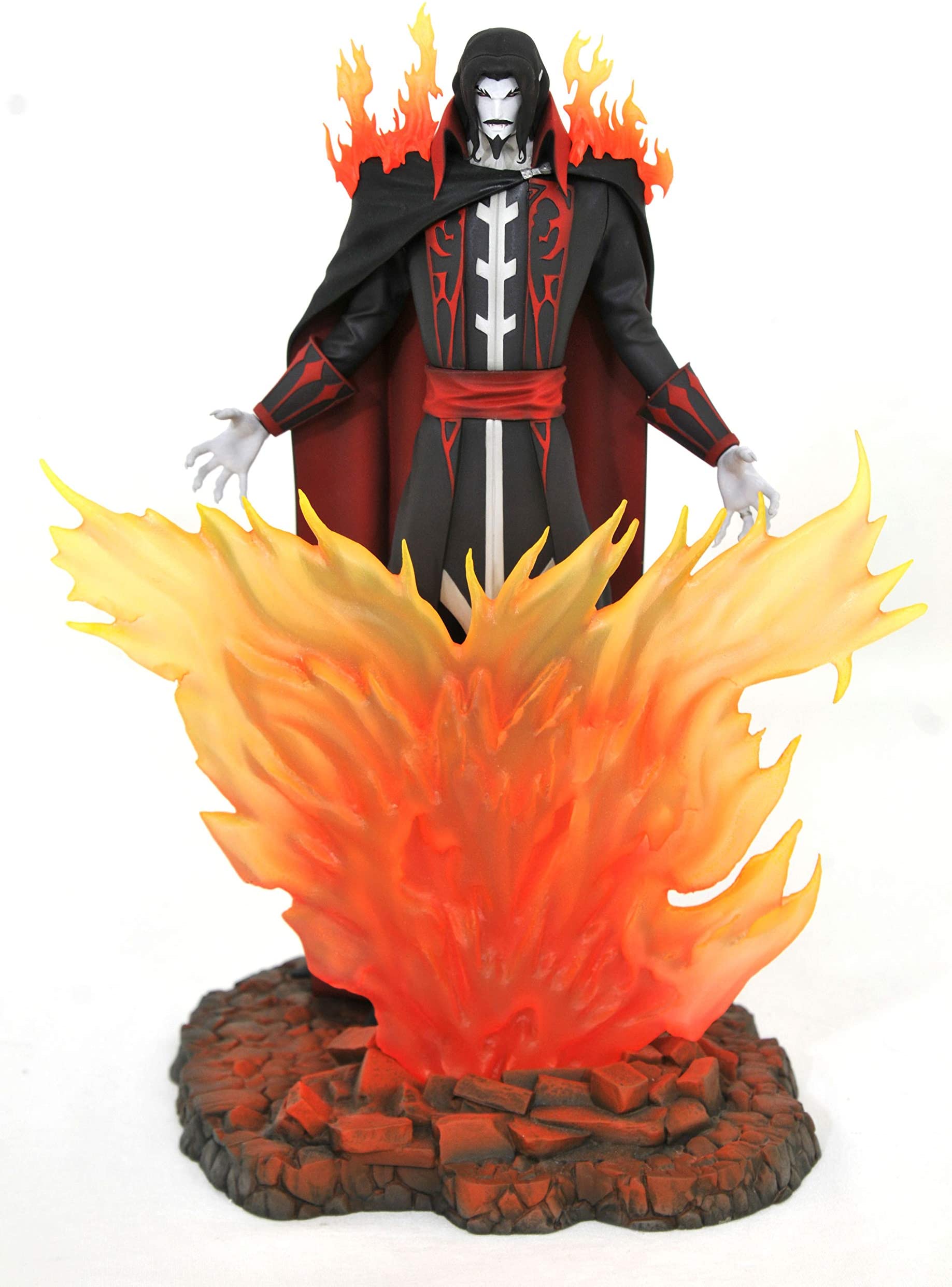 A Diamond Select Toys release! The antagonist of the Castlevania animated series on Netflix, Dracula rises from the flames in this dramatic Gallery Diorama. Crafted from high-quality PVC, it features detailed sculpting and paint applications and comes packaged in a full-color window box. Designed by Caesar, sculpted by Rocco Tartamella. Formerly a GameStop exclusive.