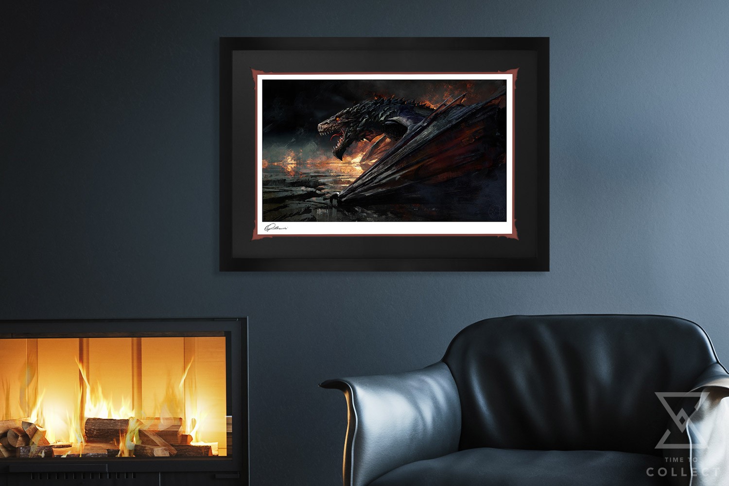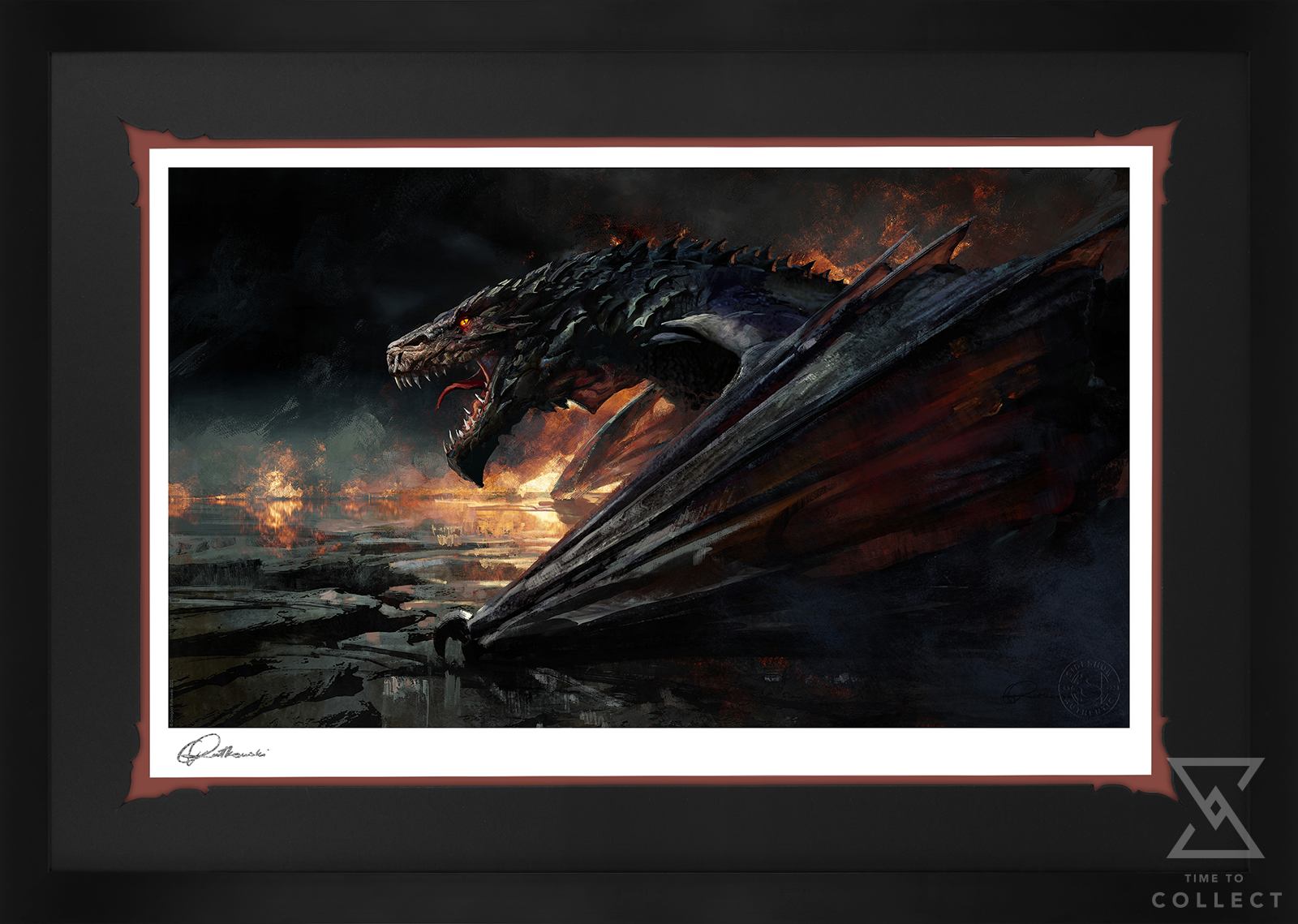 Each Dragon Cave 2 Fine Art Print features an authorized, automated artist signature and an embossed Seal of Authenticity as a part of the limited edition of 250 pieces. Available unframed or in a custom framed format, this dragon wall art makes a ferocious addition to any fantasy collector’s home gallery or gaming room.