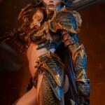 The polyresin Dragon Slayer Statue is fully sculpted with intricate detail from head to toe, bringing fantastical action to every aspect of this original figure. In the fight against dragons, this warrior woman has armed herself with protective aspects harvested from her fallen foes- black and gold horn armor, scaled vestments, and a red dragonskin cape guard her from the flames and claws of these brutal beasts. Once in striking range, it is up to her serrated hunting knife and legendary greatsword, both freshly stained with dragon blood, to finish the deadly job. The Dragon Slayer’s battle-hardened look is completed with fierce blonde braids and a stripe of smoky makeup across her eyes, her gaze stern as she faces down the most frightening creatures ever beheld by humanity.