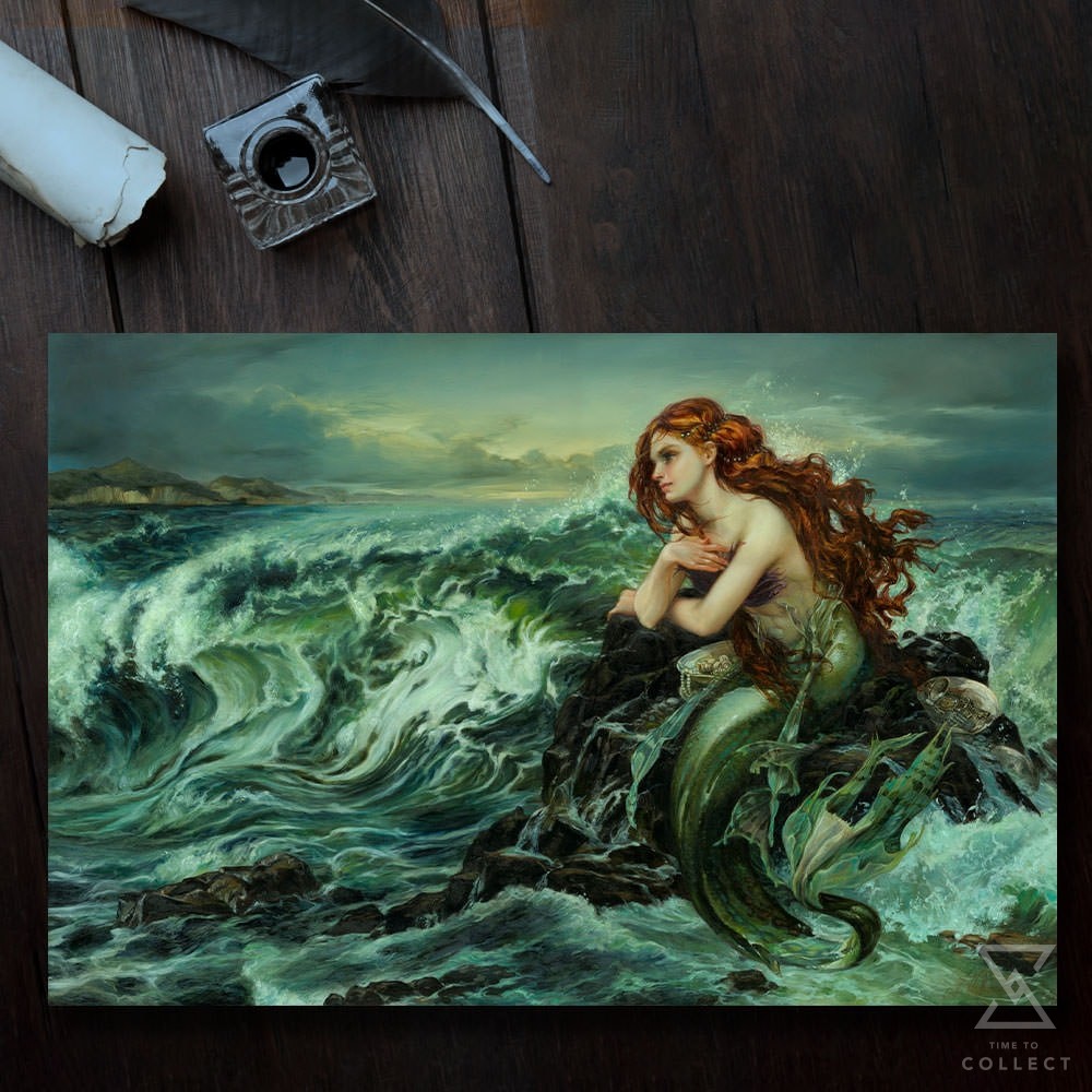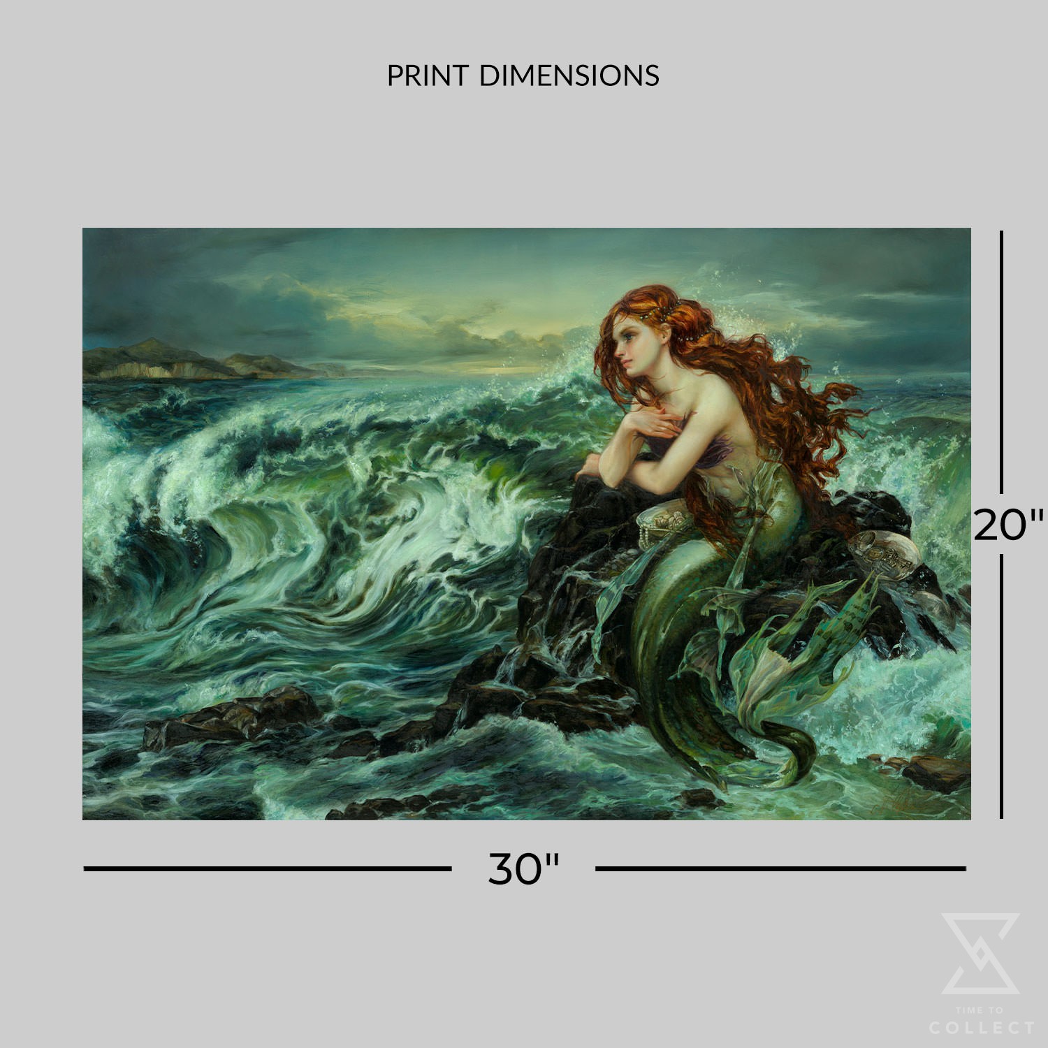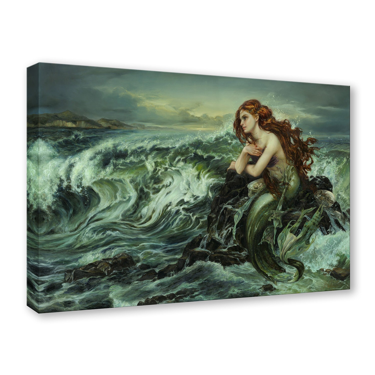 Sideshow and Collectors Editions are proud to present the Drawn to the Shore (Signed & Numbered Edition) Canvas Art Print by artist Heather Edwards! In this beautiful painting, Ariel rests among the crashing waves at the seashore, longing for a life on land with her beloved Prince Eric. Even the waves appear to be urging her toward her destiny to find love, in this imaginative interpretation of this enduring fairytale, masterfully created in the timeless style of a classic Pre-Raphaelite painting. This ready-to-hang gallery-wrapped canvas print is studio embellished with hand-painted accents to the canvas, and is sure to make a charming addition to your Disney art collection. Each print is hand-signed by the artist and includes a Certificate of Authenticity from a limited edition of 195 hand-numbered pieces.
