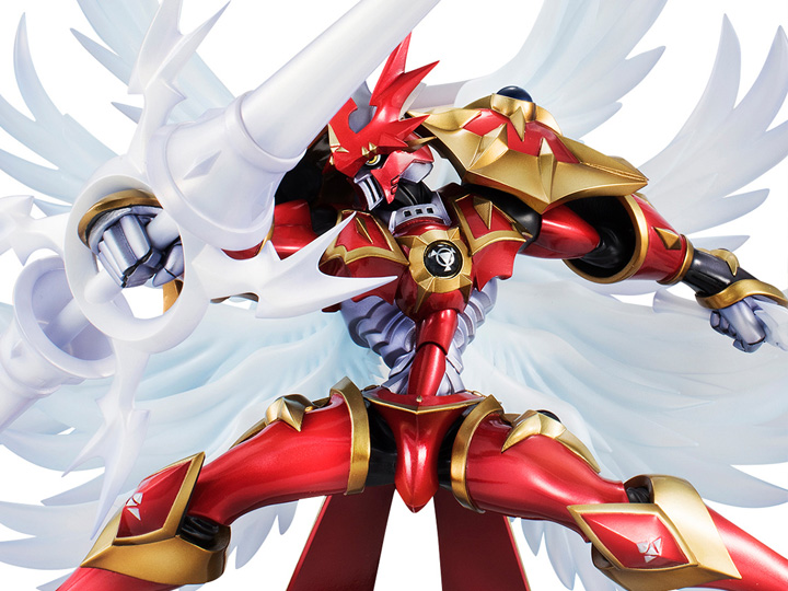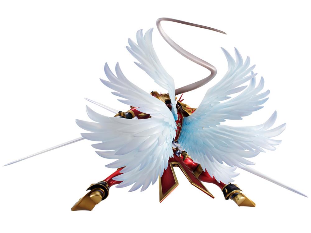 The Royal Knight Dukemon, from the hit series Digimon Tamers, stands at the ready with his double ended lance in one hand and sword in the other. Beautifully sculpted with wings expanded, this figure stands an impressive 9.45 inches tall.