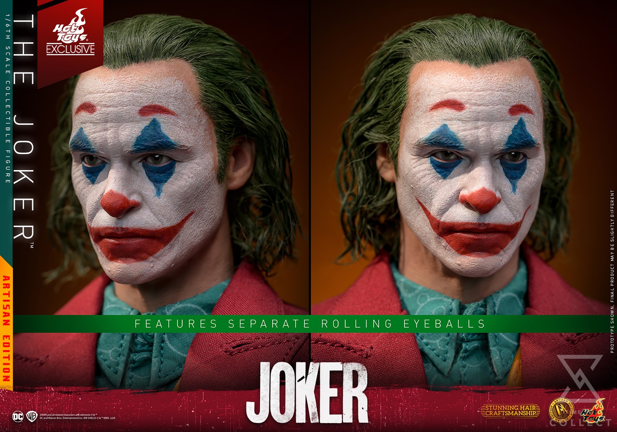 The highly-detailed figure is faithfully crafted based on Arthur Fleck a.k.a. Joker in The Joker. Features a newly developed head sculpt with separate eyeball rolling system to recreate those subtle, unsettling eye movements. And the attention to detail in replicating his expression, including the red grin, and blue facial makeup under his poorly dyed green hair by implantation technique using wool material, is wonderful.