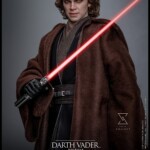 The sixth-scale figure features a head sculpt with separate rolling eyeballs and meticulously implanted mid-length curly dark brown hair made of wool material to enhance realism. His face shows Sith-yellow iris eyes, detailed scars, and a tortured expression that echoes his transformation. Further enhancing the figure is a mechno right arm, symbolic of his shifting identity, along with nine interchangeable hands ranging from fists to lightsaber-holding and Force-using gestures. His multi-layered costume is finely tailored, including a bendable wire-embedded Jedi robe, a leather-like tabard, tunics, pants, and long boots, combined with a utility belt with pouches and a lightsaber hilt holder.