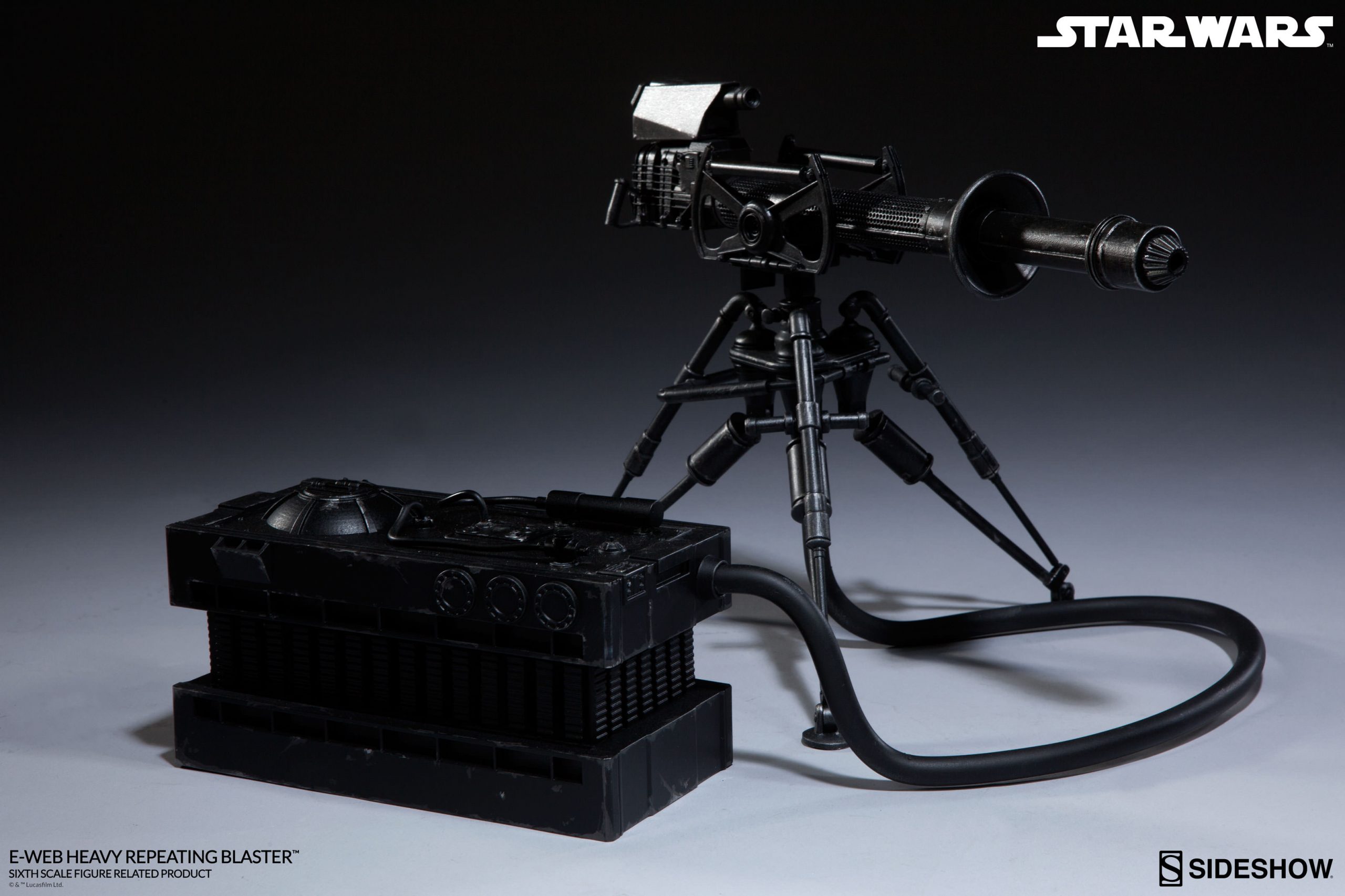 Sideshow Collectibles is proud to present the E-Web Heavy Repeating Blaster Sixth Scale weapon. Featuring a portable power generator with conduit hose, the Imperial Army’s powerful blaster can be positioned up and down or from side to side, to create a custom display, the perfect complement to any Star Wars Imperial Army trooper sixth scale collection.