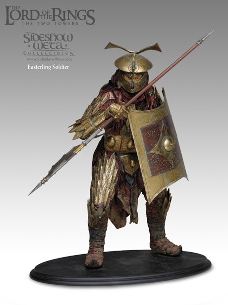Sculpted by Gary Hunt, the essence of the Easterling Soldier is captured in this amazingly detailed 1:6 scale statue. It is hand cast in heavy weight polystone and hand painted to the highest standards. The display base has been etched with the map of Middle Earth and includes the Lord of the Rings logo, the character’s name and sculptor’s signature