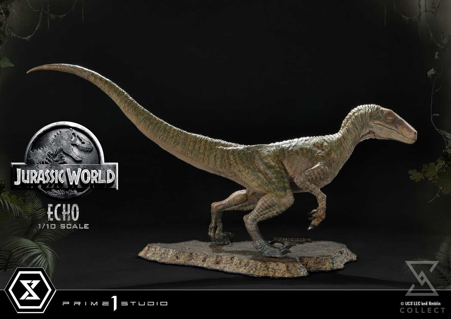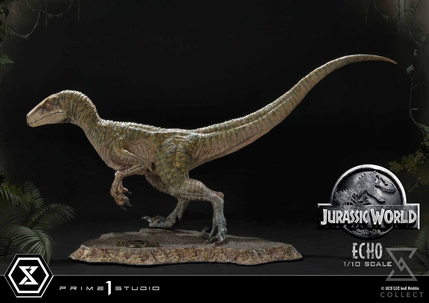 Echo fits perfectly with the other 1:10 scale Velociraptors to complete the whole pack! Awesome to display all together with PCFJW-03 Blue, PCFJW-04 Delta, and PCFJW-06 Charlie! Catch them ASAP before they disappear into the wild!