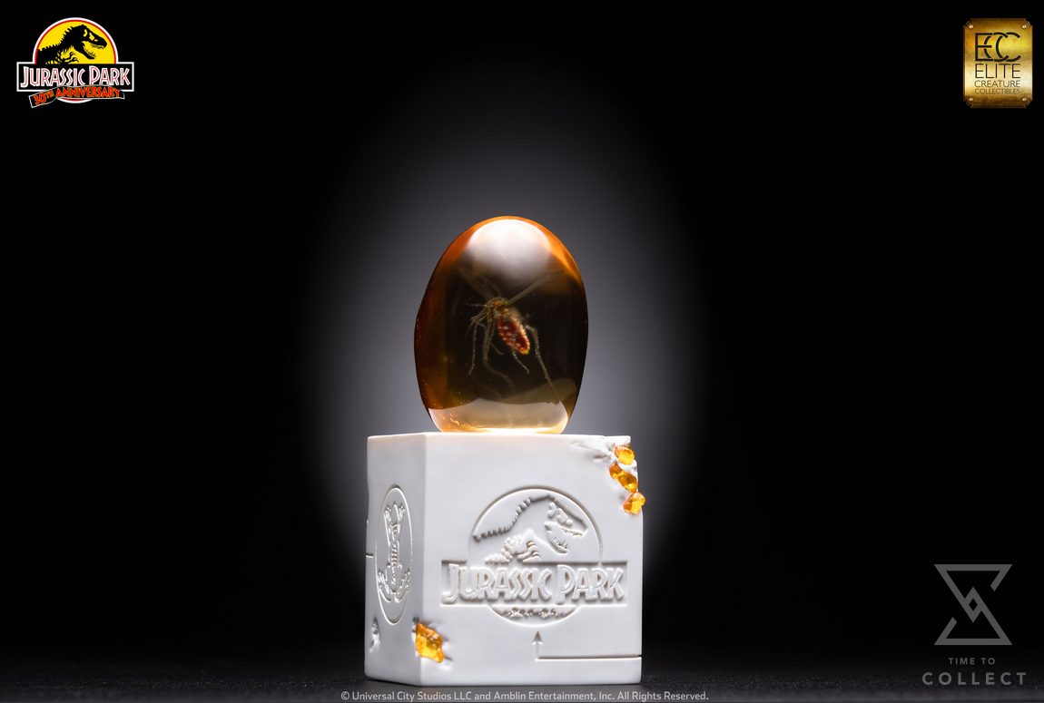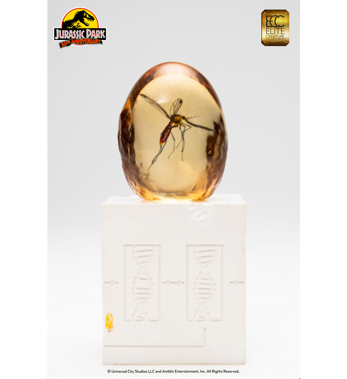 Elite Creature Collectibles is proud to present a replica of Elephant Mosquito in Amber. ILM artist Bitan crafted a faithful recreation of the original elephant mosquito, capturing all the wonderful details. We even used top 3D-printing technology to get the dinosaur DNA into the belly of the mosquito!