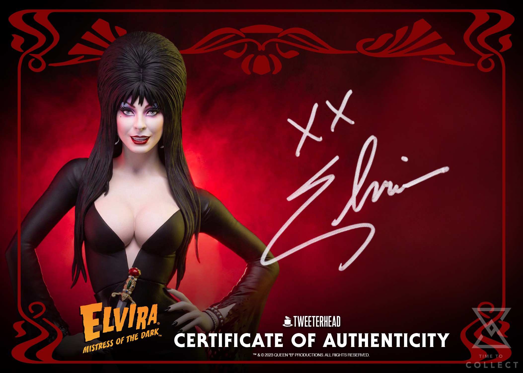 This exclusive Tweeterhead edition is limited to 350 maquettes. This special variant, showcasing Elvira’s trademark mischievous smile, will only be available through Tweeterhead.com.