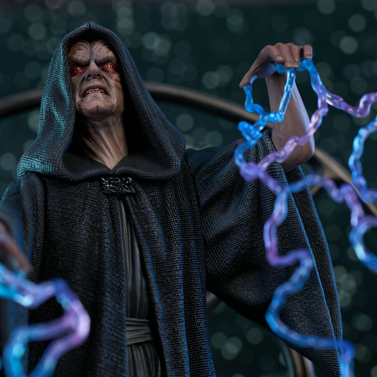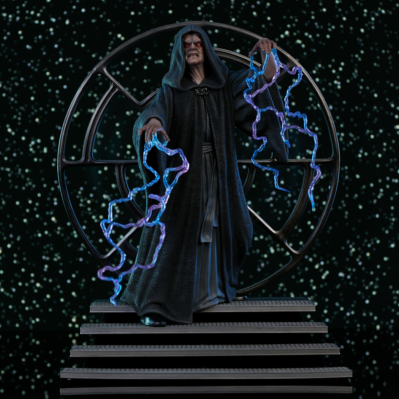 A Gentle Giant Ltd. release! Let the hate flow through you! Emperor Palpatine unleashes the Dark Side of the Force in this all-new Milestones statue! Standing approximately 12 inches tall atop a throne room base, this 1/6 Scale Statue features interchangeable hands, with and without force lightning. Limited to only 2000 pieces, it comes packaged with a numbered certificate of authenticity in a full-color box. Designed and sculpted by Paul Harding!