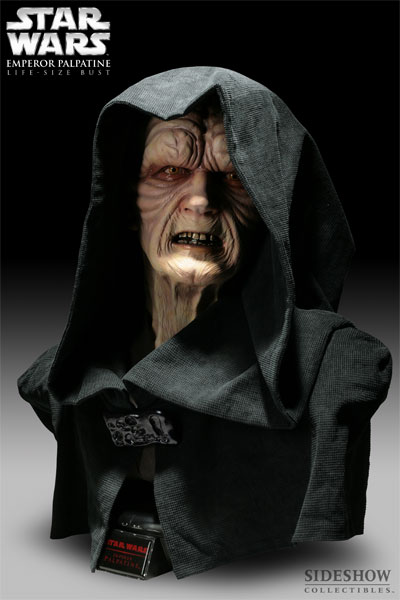The life-size Palpatine bust captures the Emperor, the Dark Lord of the Sith, in all his stately serenity, evil intent visible behind his cold stare. The Palpatine bust is mounted on a Star Wars inspired display base, including a ‘Palpatine’ nameplate. The hand crafted, hand painted life-size Palpatine bust is sure to become a supreme addition to any Star Wars collection.