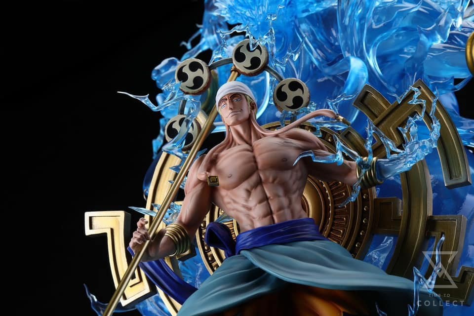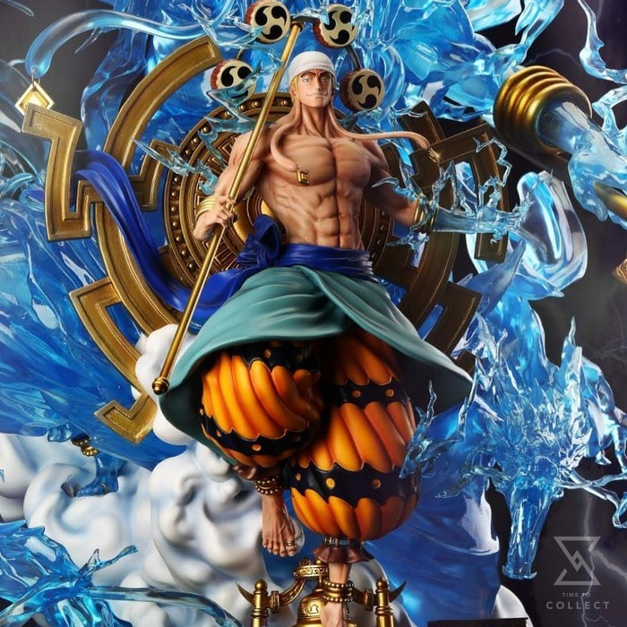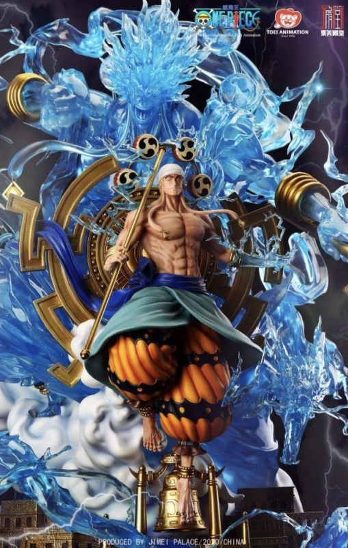From Jimei PalaceWork comes their dedication to One Piece villain, Enel. Inspired by the lightning god Raijin, Enel is the main antagonist of Skypiea. Hovering over the buildings of Sky Island, his lightning powers are unleashed, creating a threatening energy behind him.
