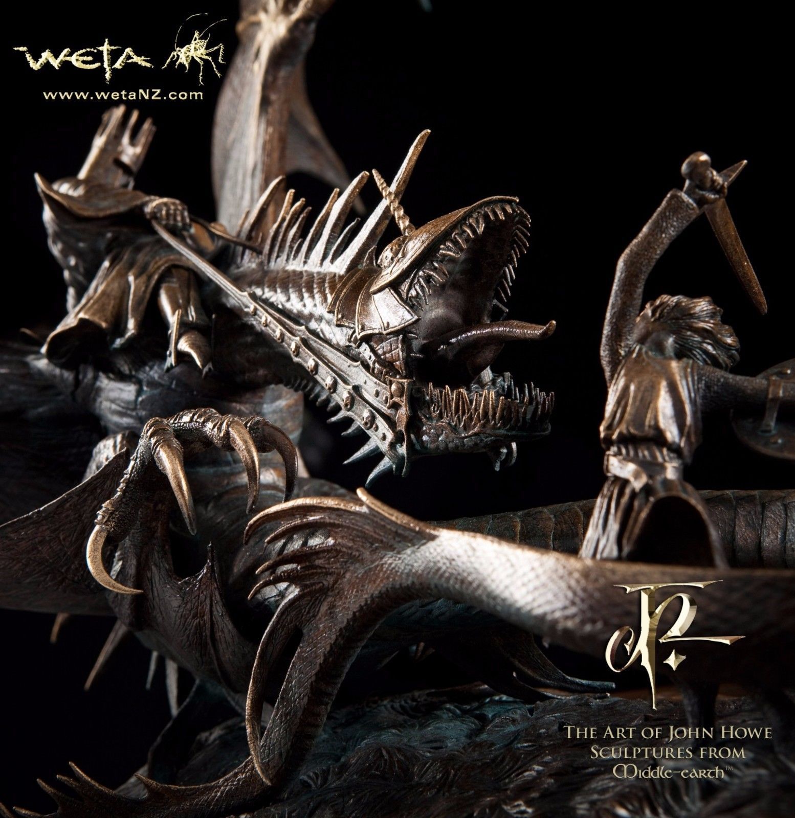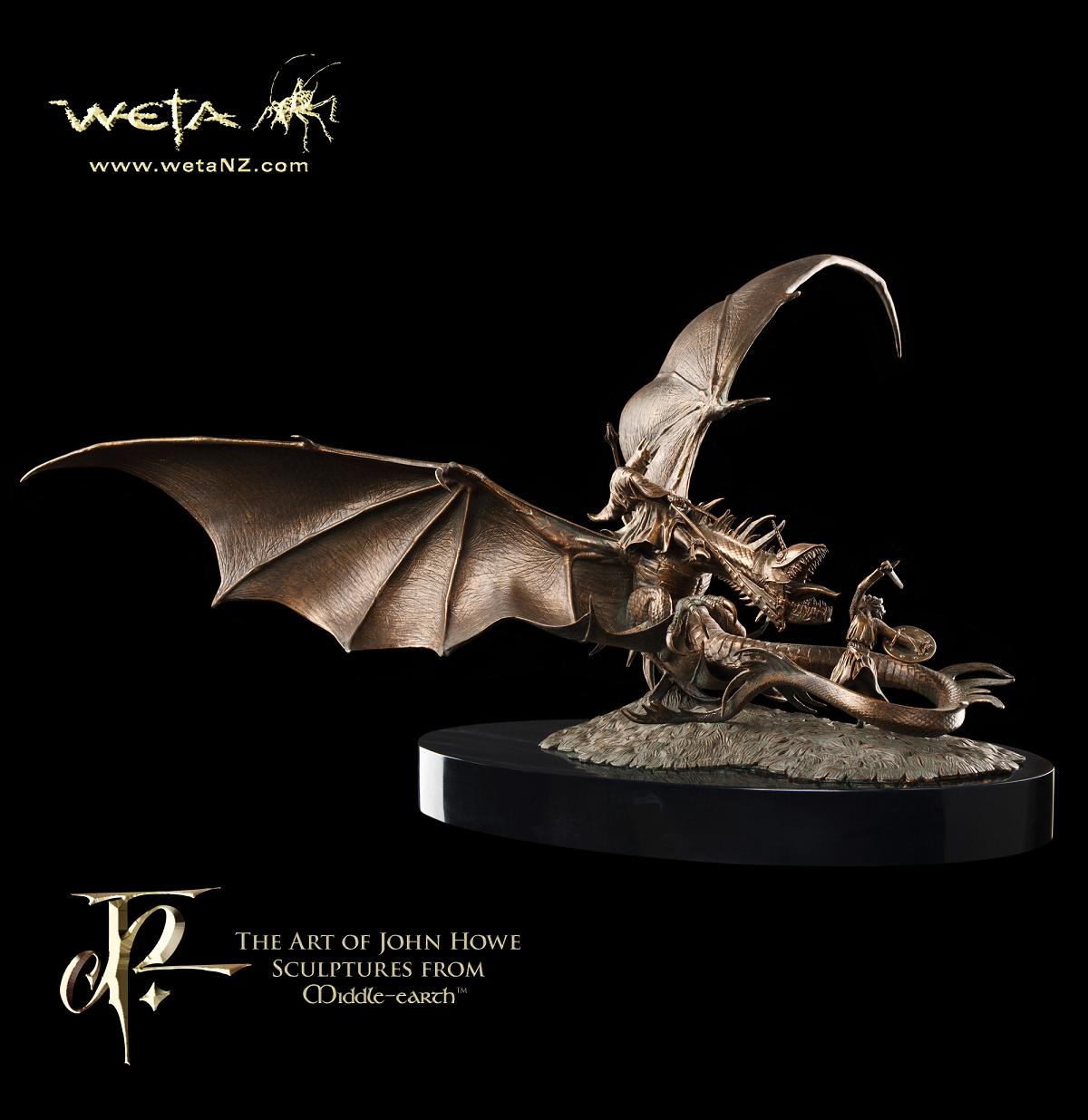 This is a rare opportunity to own this iconic and dynamic piece. The Art of John Howe – Sculptures from Middle-earth™ is a series of sculptures from John’s iconic representations of Tolkien’s worlds, sculpted by Weta sculptors Daniel Cockersell, Brigitte Wuest and Eden Small under the creative guidance of John Howe and Richard Taylor. This statue is cast in polystone resin, a material that allows intricate detail. It’s the same material we cast most of our collectible statues and busts.For fine art collectors, Éowyn and the Nazgûl™ is also available in Bronze. The statue sits on a black marbled polystone base. The bases are cast using a process that creates a unique marbling effect for each individual piece.