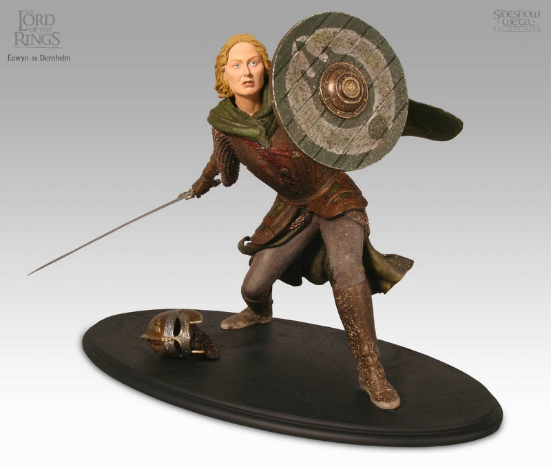 Sculpted by Heather Kilgour, Éowyn as Dernhelm is captured in this amazingly detailed 1:6 scale statue. It is hand cast in heavy weight polystone and hand painted to the highest standards. The display base has been etched with the map of Middle Earth and includes the Lord of the Rings logo, the character’s name and sculptor’s signature.
