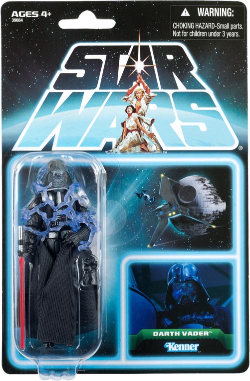 Darth Vader is a rework of 2010’s TVC Darth Vader (VC08) figure cast in parts in new translucent plastic to replicate the damage he sustains under Emperor Palaptine’s wrath. A “face” (skull) is visible behind the helmet.