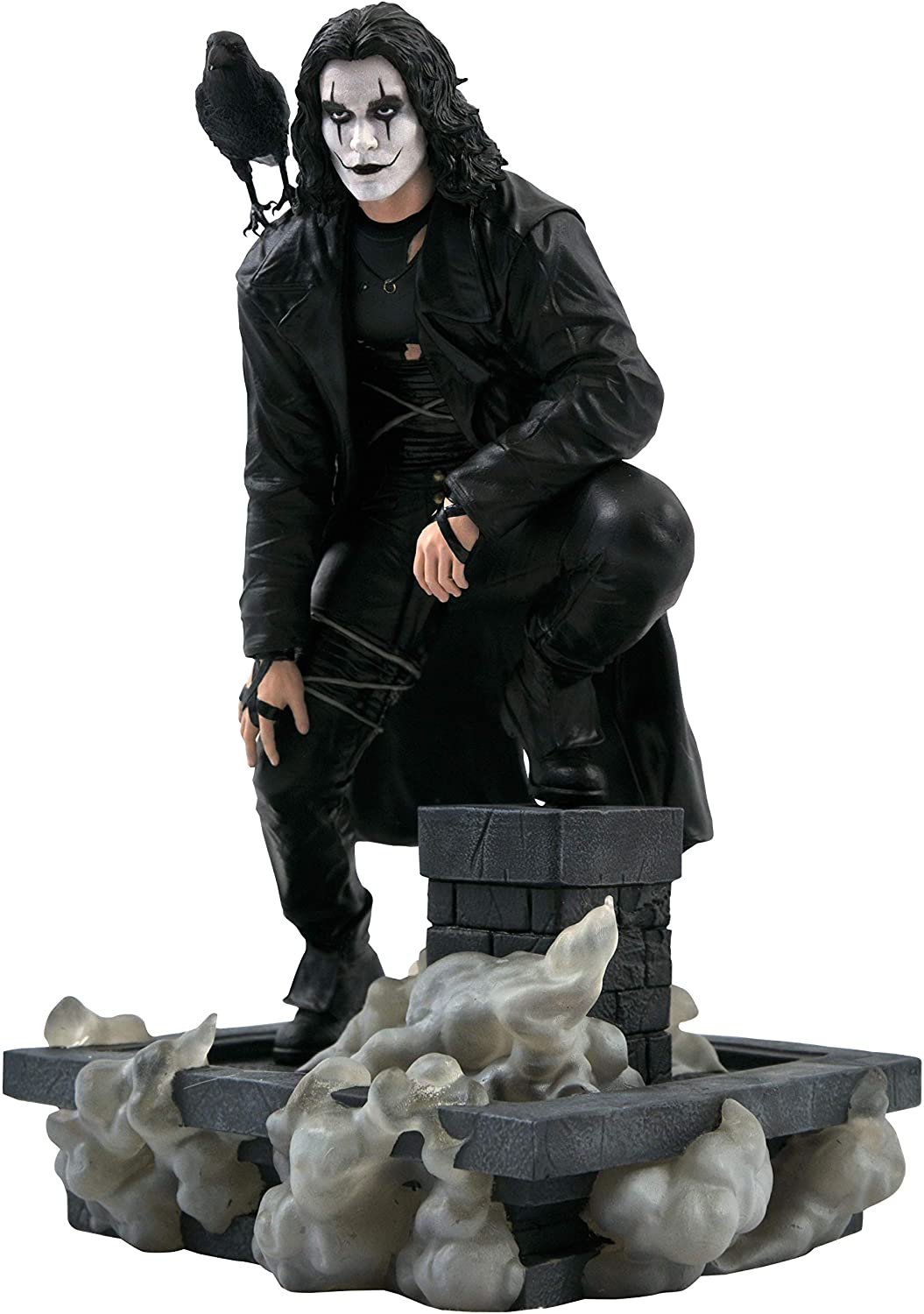 Crouching on a rooftop, Eric Draven stalks his prey in this all-new Gallery Diorama based on the cult-favorite movie The Crow! With the Crow on his shoulder and steam circling his feet, this approximately 11-inch sculpture is made of high-quality PVC and features detailed sculpting and paint applications. It comes packaged in a full-color window box. Designed by Caesar, sculpted by Rocco Tartamella.