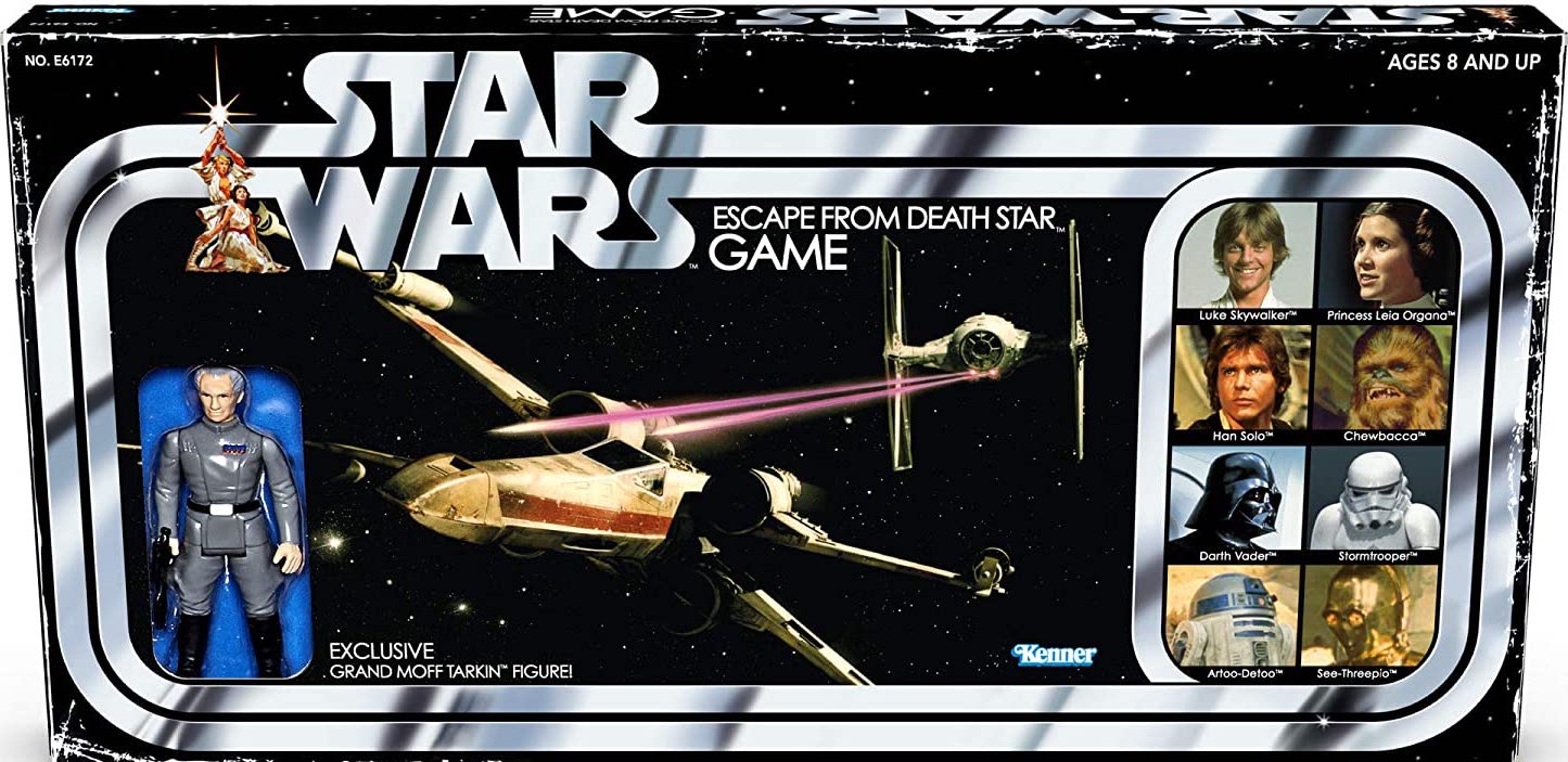 Based on the original board game from Kenner released in 1977 and includes an exclusive Retro Collection Grand Moff Tarkin action figure. Re-live Star Wars moments as you help your favorite characters escape the Death Star trash compactor and work their way to the Rebel Base.Take on the challenge of helping Luke Skywalker, Princess Leia, Han Solo, and Chewbacca escape to freedom!
