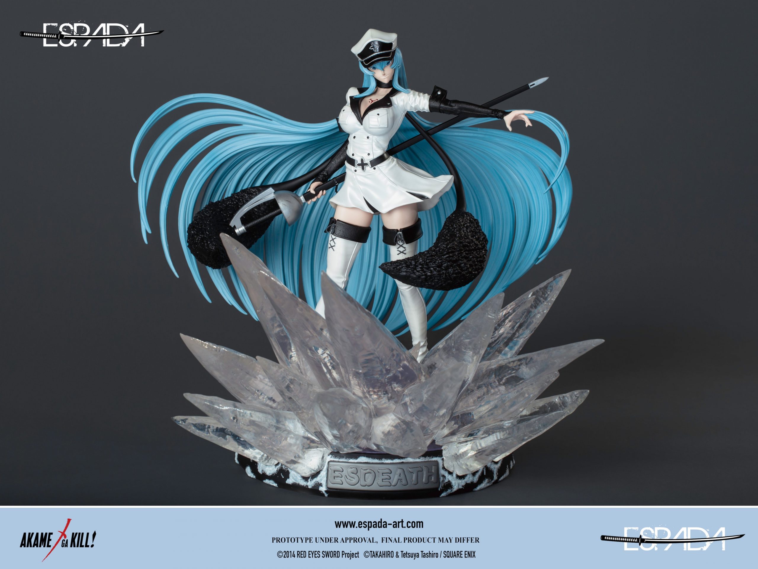 “We aimed to create a statue that perfectly encompassed Esdeath’s power and beauty. This can be seen in the sweeping motion of her left arm, as she summons her ice spikes forward. This statue comes with two additional interchangeable left arms to give a customizable feel depending on the collector’s preference. One arm consists of Esdeath holding her ice sword, taken from the climatic battle against Akame. The second additional arm gives the sense that she is raising the ice from below the ground. Created in 1/6th scale, this statue is limited to 500 pieces and will come with a certificate of authenticity and assembly instructions booklet. ” – Espada Art