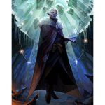 Essek Thelyss, also known as the Shadowhand of the Kryn Dynasty, is a mysterious figure whose encounter with the Mighty Nein changes him fundamentally. Atoning for past crimes, he notably forms a close bond with Caleb Widogast over their shared magical pursuits. Our portrait spotlights the elusive mage, shrouded by his robes and surrounded by seven motes of starlight. Skilled in the art of dunamancy, his spellcasting can manipulate time and actuality, making Essek a powerful ally, friend, and teammate to the heroes of Wildemount.