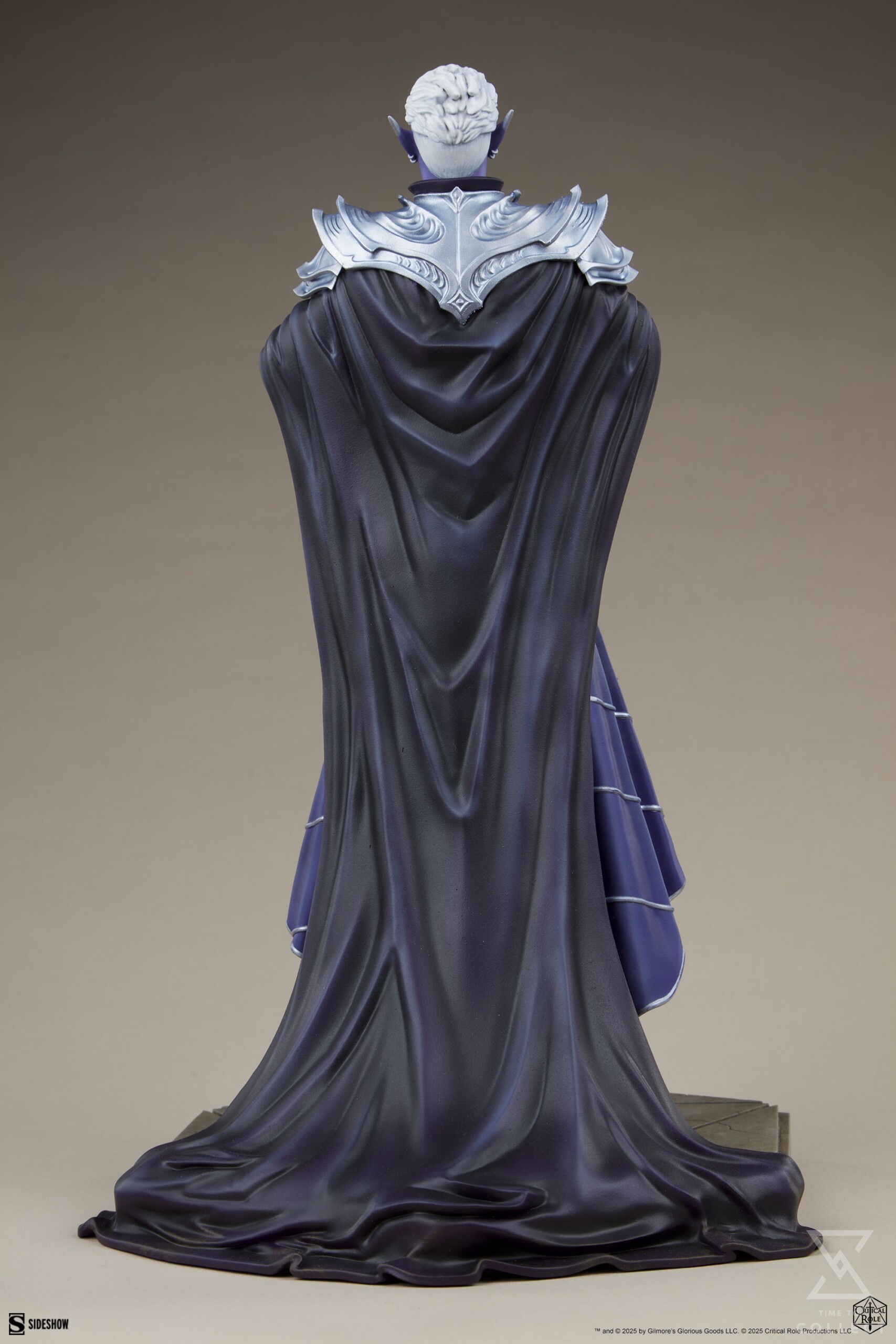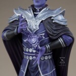 The Essek Thelyss – Mighty Nein Statue appears to hover above a hexagonal faux-stone base engraved with the Mighty Nein monogram, showing his allegiance to the team of adventurers. He wears a dark cloak overlaid with ornate silver shoulder armor, and beneath it is a set of Xhorhasian-styled garments that complement his purple complexion. Essek’s handsome elven portrait features short white hair and silver ear jewelry accenting his self-assured expression. Pair this Critical Role collectible with members of the Mighty Nein, including his eventual partner Caleb Widogast, for an even more powerful party of world-saving heroes.