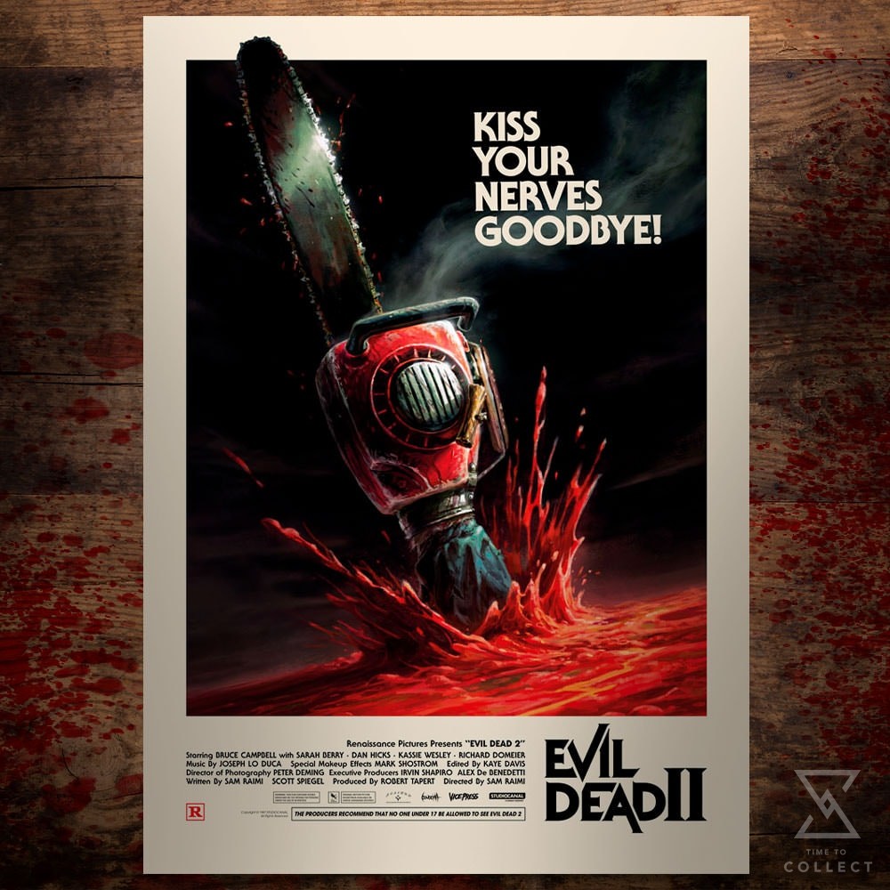 Sam Raimi’s 1987 cult-classic Evil Dead II gets the ultimate splatter treatment in this awesomely gory movie poster art print. Limited to 2000 pieces as part of Vice Press’ ‘Editions’ series – and sure to make one groovy addition to your Evil Dead II collectibles display – don’t miss your chance to rev up your own cabin walls with this incredible horror artwork!